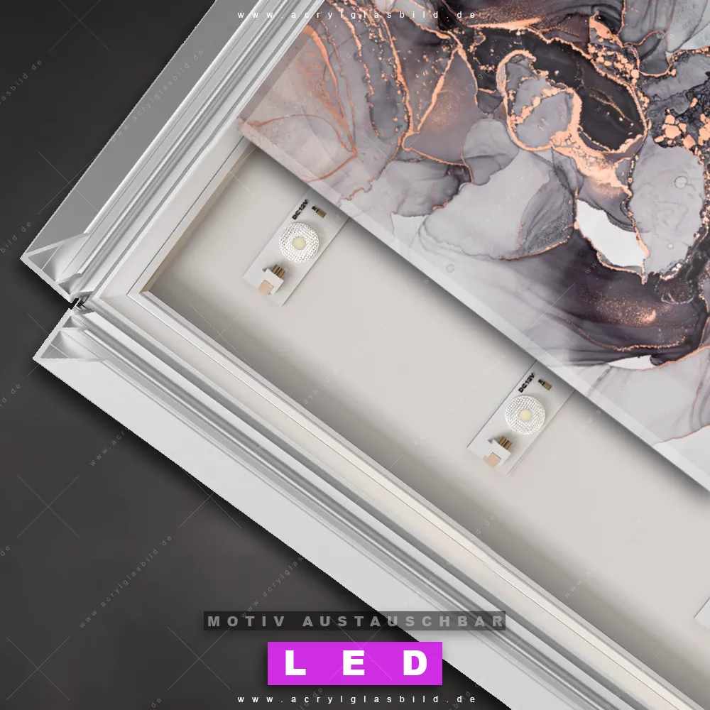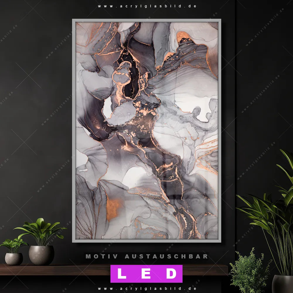 Du suchst nach einem Wandbild mit LED Beleuchtung als ultimativen Hingucker für deine Wände? Dann haben wir das perfekte dimmbare LED Bild mit Fernbedienung und optionaler Farbtemperatursteuerung für dich: unser abgefahrenes Muster - Texturen Canvalight® DIA LED Acrylglasbild! Mit dem LED Leuchtbild aus Acrylglas Luxury Abstract Fluid Art No. 9 im Hochformat mit austauschbarer bedruckter Acrylglas-Scheibe bringst du nicht nur Licht, sondern auch ordentlich Stil in deine Bude.