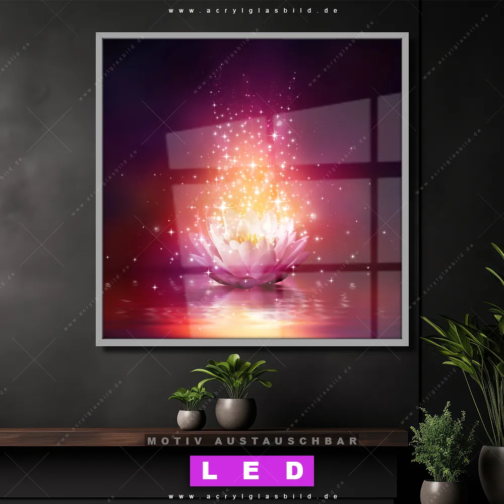 Bist du bereit, deine Wände mit einem dimmbaren LED Bild mit Fernbedienung und optionaler Farbtemperatursteuerung zum Leuchten zu bringen? Wir haben das ultimative Blumen - Botanik LED Acrylglasbild Canvalight® DIA für dich! Unser LED Wandbild aus Acrylglas Magie Blume im Quadratischen Format mit austauschbarer bedruckter Acrylglas-Scheibe im DIA-Klapprahmen bringt sofort jede Menge Glanz in deine vier Wände.