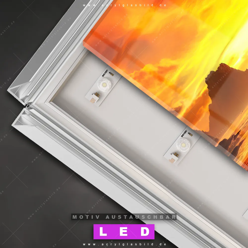 Na, worauf wartest du noch? Mach deine Wände zum Star der Show und bestelle jetzt das Canvalight® DIA LED Acrylglasbild Feuerhimmel über dem Ozean. Deine Wände werden es dir danken und deine Freunde werden dank der wechselbaren Motive vor Neid platzen!