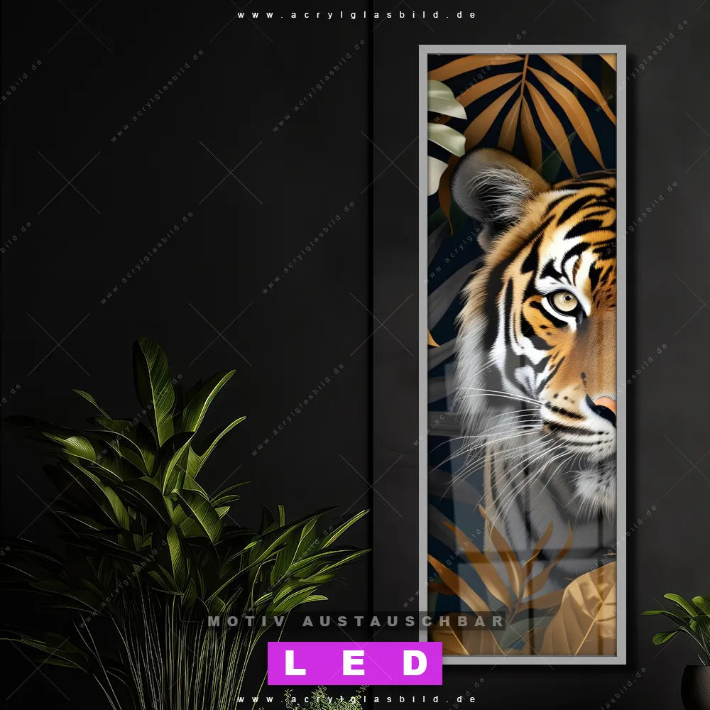 LED Acrylglasbild Canvalight® DIA | Majestätischer Tiger im Dschungel | Schmal