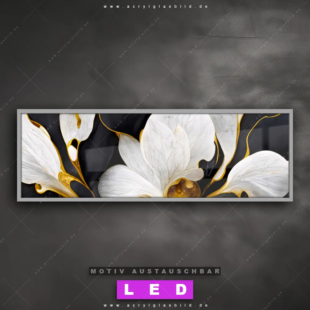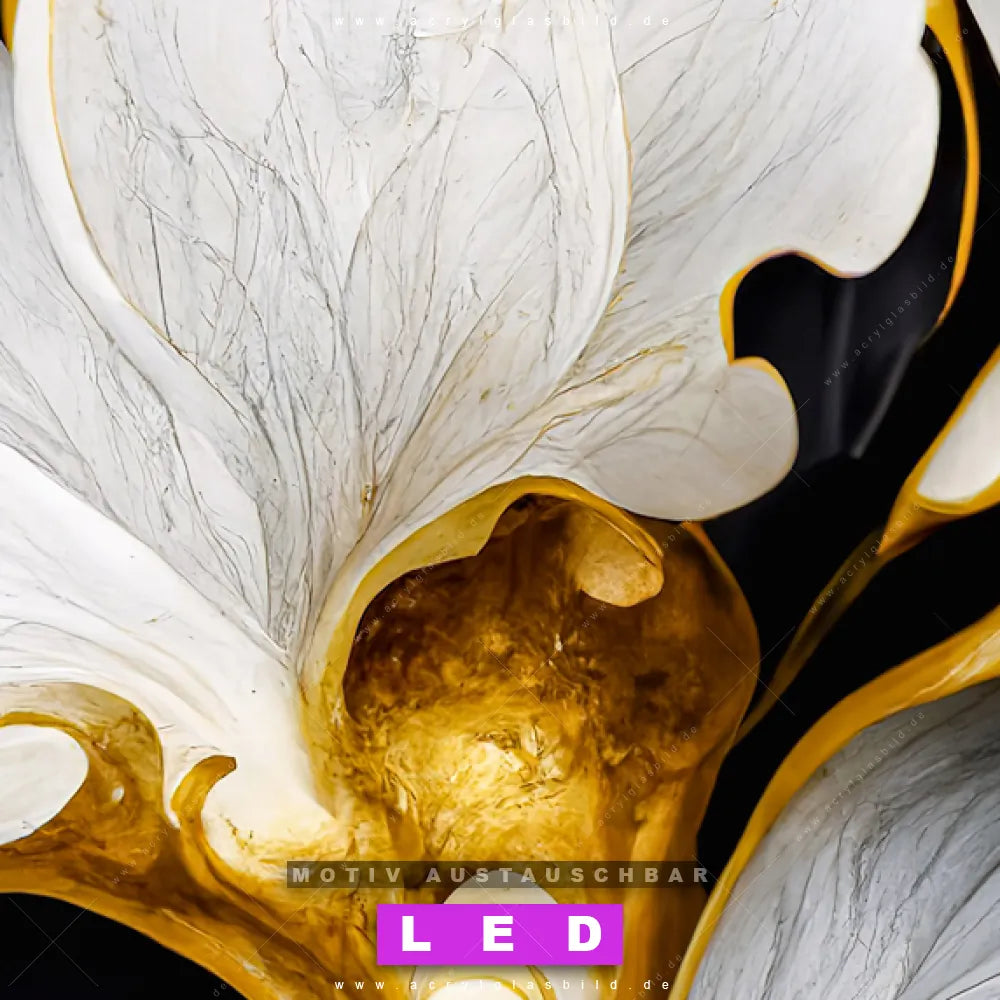 LED Acrylglasbild Canvalight® DIA | Marmor Blüten in weiß & gold | Panorama