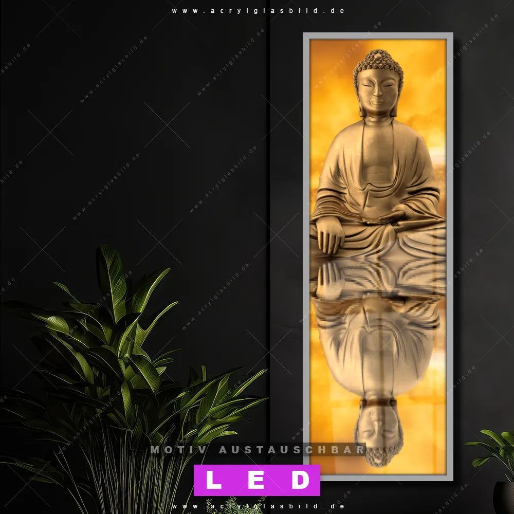 Bist du bereit, deine Wände mit einem dimmbaren LED Bild mit Fernbedienung und optionaler Farbtemperatursteuerung auf das nächste Level zu bringen? Unser Buddha - Feng Shui Canvalight® DIA LED Acrylglasbild ist genau das, was du brauchst! Das Wandbild mit LED Beleuchtung im Schmalen Format mit austauschbarer bedruckter Acrylglas-Scheibe Meditierender Buddha am See bringt Licht und Stil in dein Zuhause – und das in null Komma nichts!