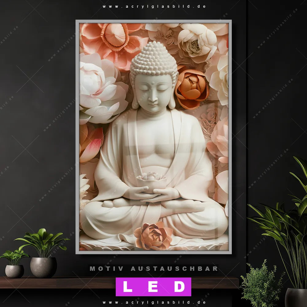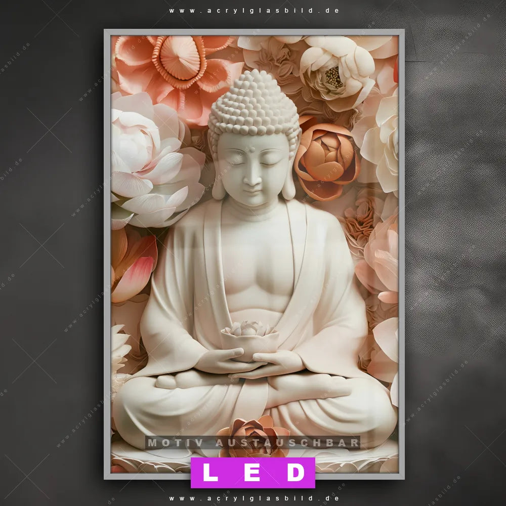 LED Acrylglasbild Canvalight® DIA | Meditierender Buddha mit Blüten | Hochformat