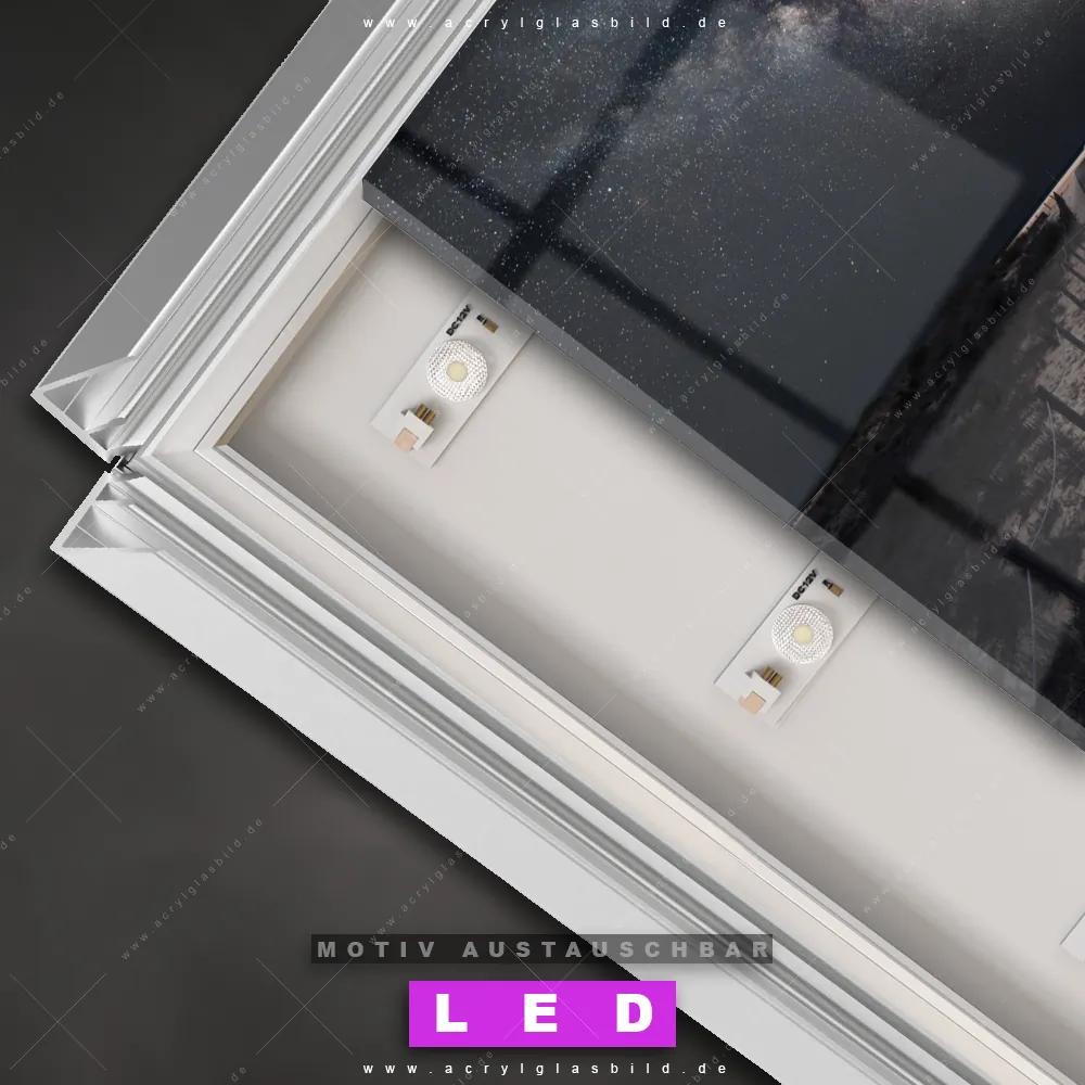 Also, worauf wartest du noch? Gib mit einem beleuchteten Wandbild mit wechselbarer Acrylglas-Scheibe deinen Wänden das gewisse Etwas und bestelle jetzt das LED Acrylglasbild Canvalight® DIA Nachthimmel mit Sternen am Horizont – dein Zuhause wird es dir danken und deine Freunde werden dank der wechselbaren Motive erblassen!