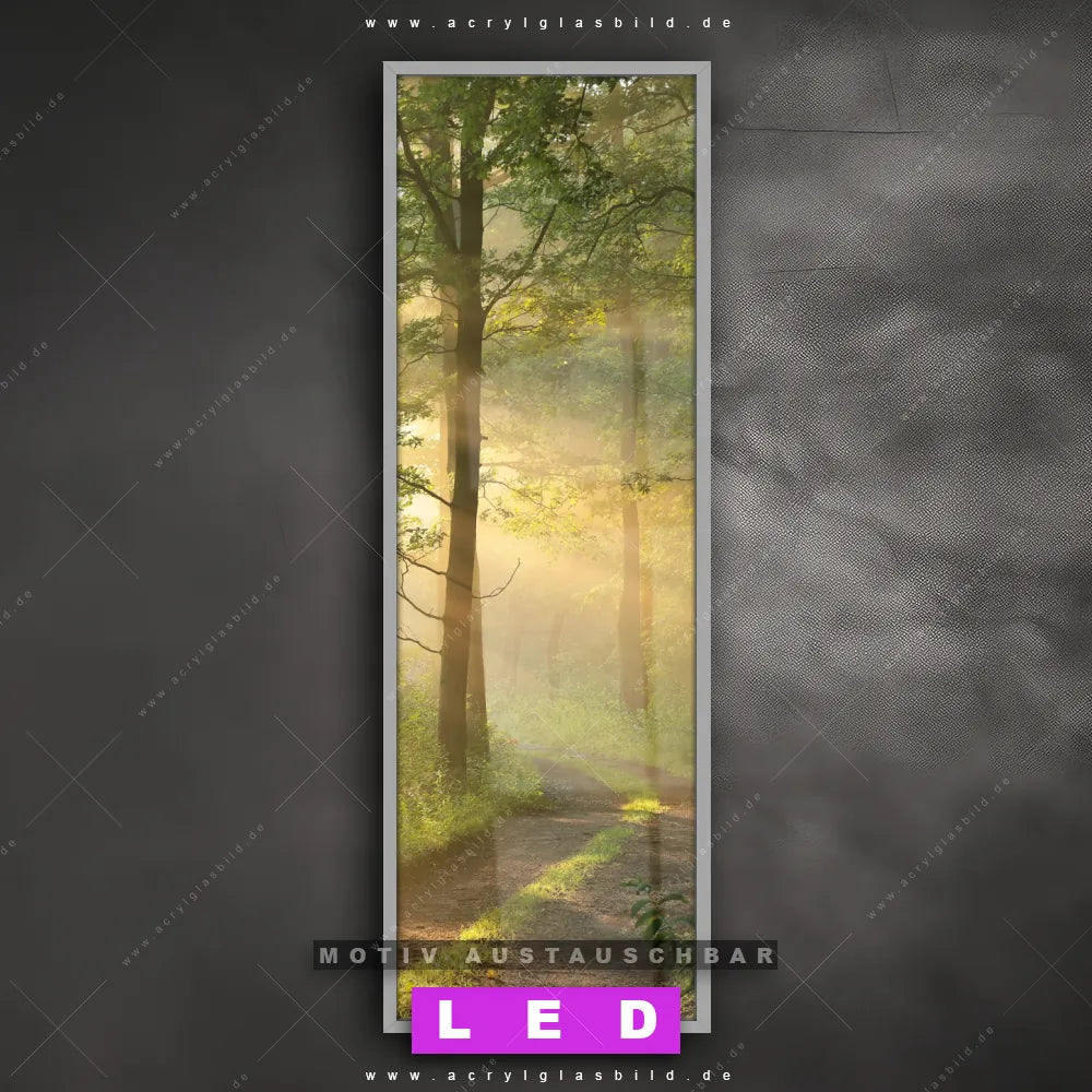LED Acrylglasbild Canvalight® DIA | Morgenspaziergang im nebeligem Wald | Schmal