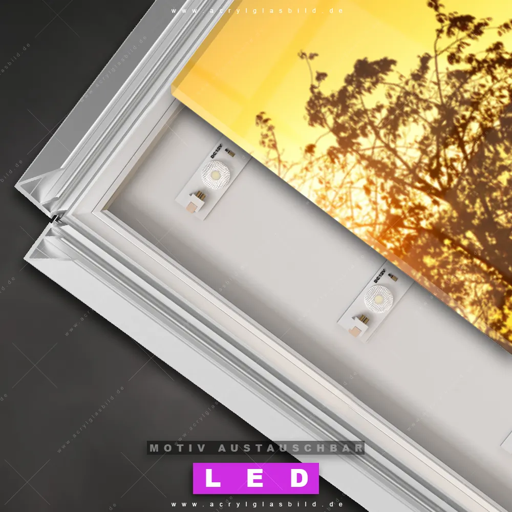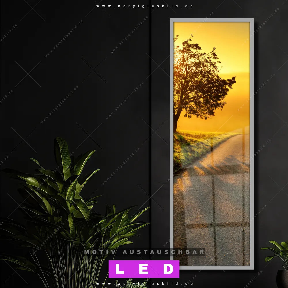 Bist du bereit, deine Wände mit einem dimmbaren LED Bild mit Fernbedienung und optionaler Farbtemperatursteuerung auf das nächste Level zu bringen? Unser Landschaften Canvalight® DIA LED Acrylglasbild ist genau das, was du brauchst! Das Wandbild mit LED Beleuchtung im Schmalen Format mit austauschbarer bedruckter Acrylglas-Scheibe Morgenspaziergang bringt Licht und Stil in dein Zuhause – und das in null Komma nichts!