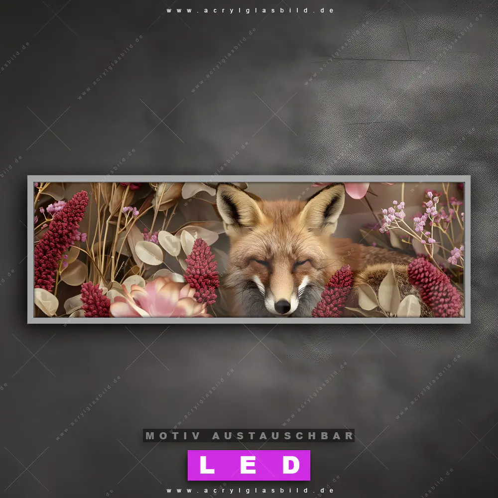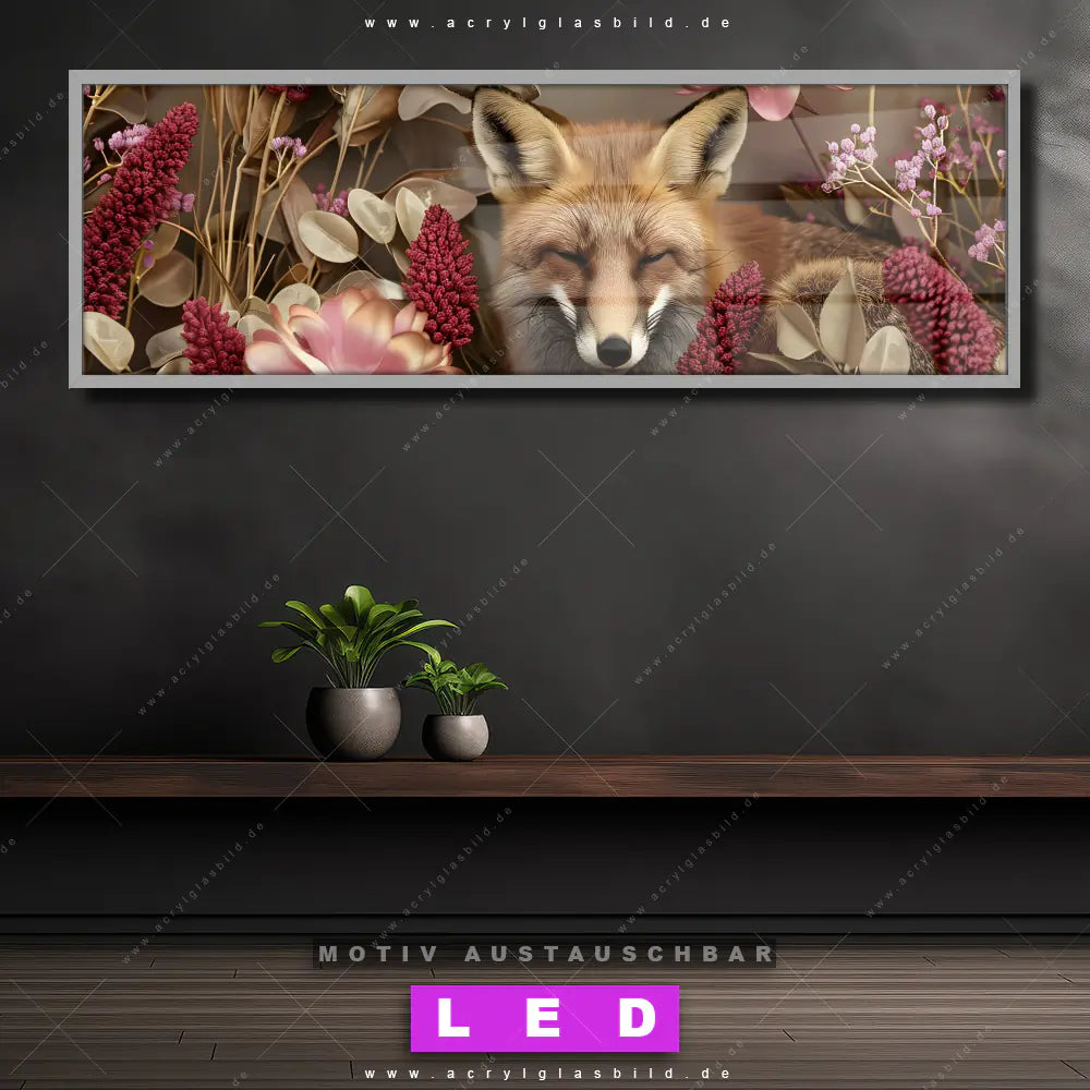 LED Acrylglasbild Canvalight® DIA | Naturbild Fuchs und Blumen | Panorama