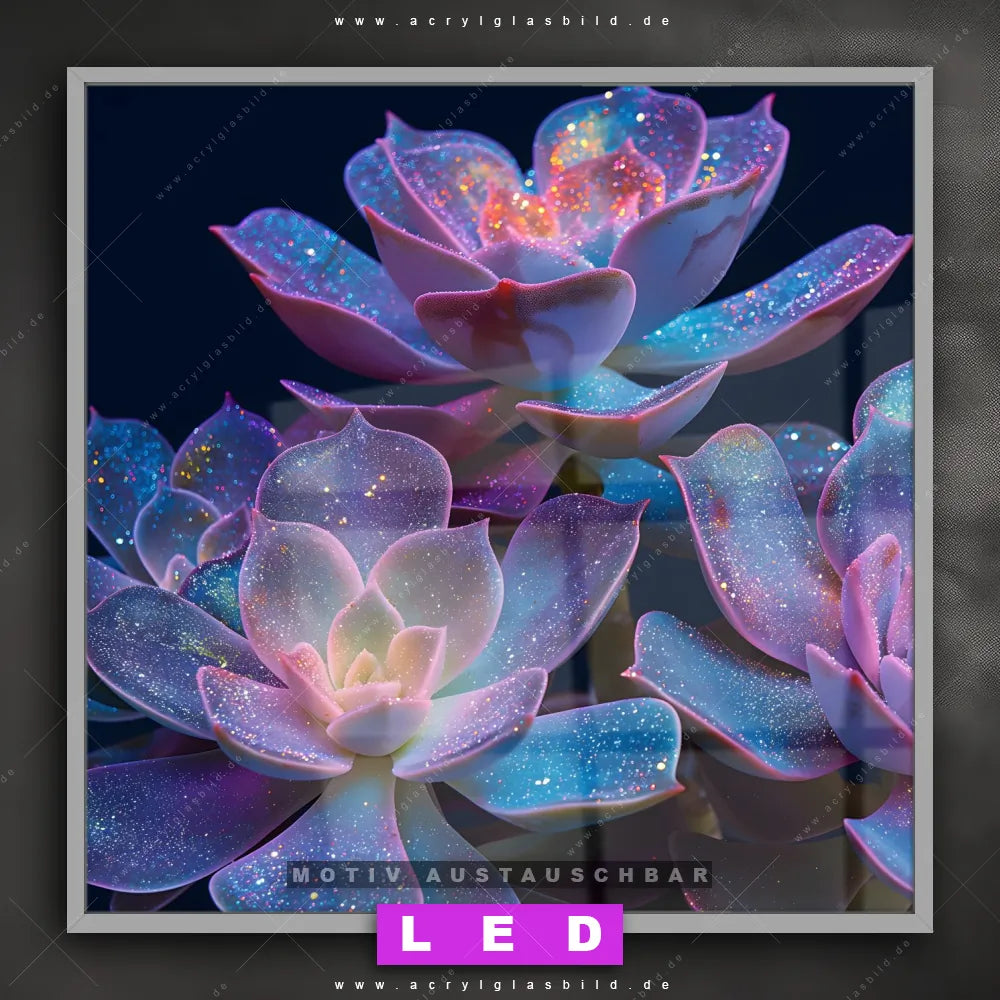 Vergiss dunkle Ecken und Langeweile! Mit unserem Acrylglasbild Glitzernde Kaktus-Pflanzen und seiner brillanten LED-Ausleuchtung wirst du dich nie wieder in der Dunkelheit verirren. Wenn du auf der Suche nach einem beleuchteten Wandbild aus Acrylglas mit Blumen, Sukkulente, Kaktus, Pflanze, Natur, Blüten, Glitzer bist, ist unser LED Acrylglasbild Canvalight® DIA Faszinierende Pflanzenwelt mit den strahlenden Motiv-Farben Lila, Schwarz, Blau genau das richtige Leuchtbild für dich. Das im Floral, Modern Art Stil gestaltete LED Bild mit glänzender Front aus Acrylglas passt perfekt zu jedem Einrichtungsstil in Arzt - Praxis, Flur - Eingangsbereich, Wohnzimmer - Schlafzimmer – vom minimalistischen Chic bis zum kreativen Chaos.