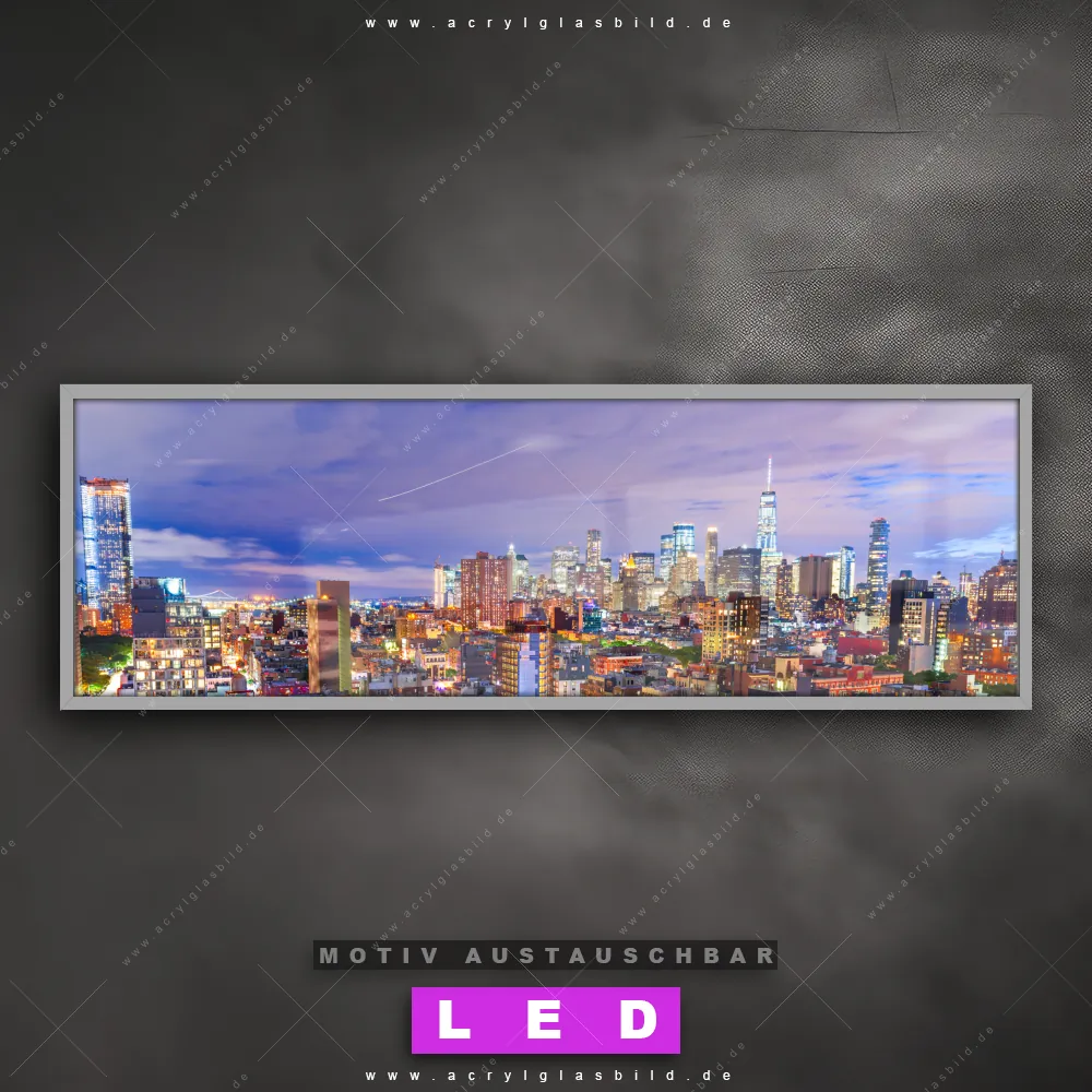 Also, worauf wartest du noch? Verwandle deine Wände mit einem LED Leuchtbild in wahre Kunstwerke und bestelle jetzt das Canvalight® DIA LED Acrylglasbild Urbaner Abendhimmel von New York. Deine Wände werden strahlen, und deine Freunde werden dank der wechselbaren Motive staunen!