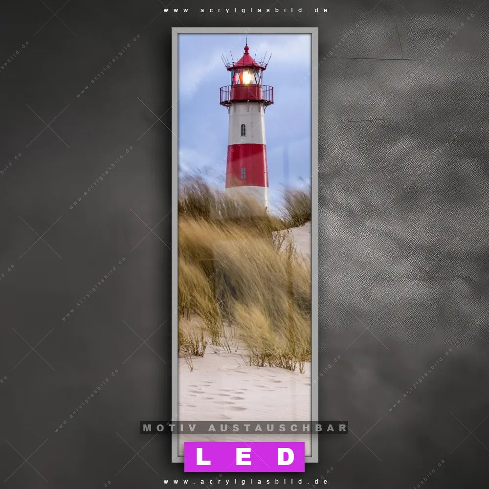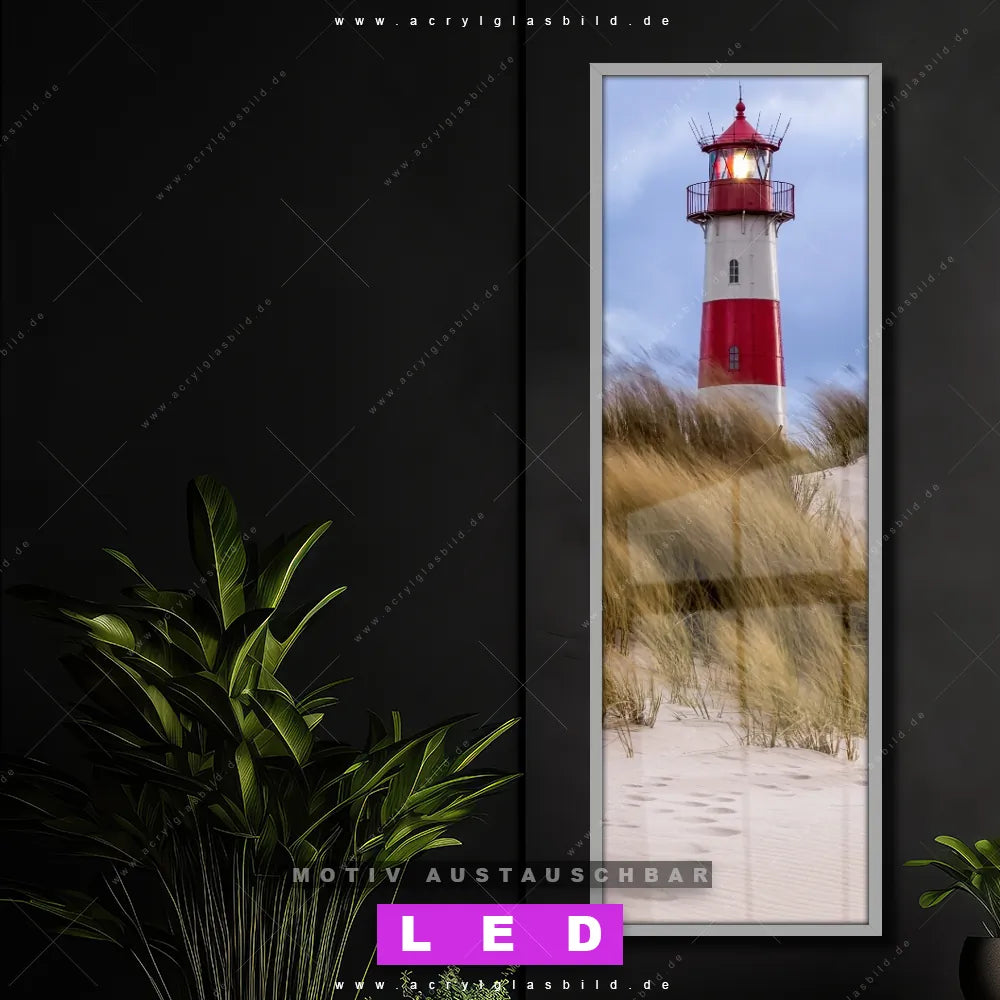 Bist du bereit, deine Wände mit einem dimmbaren LED Bild mit Fernbedienung und optionaler Farbtemperatursteuerung auf das nächste Level zu bringen? Unser Landschaften, Strand - Meer Canvalight® DIA LED Acrylglasbild ist genau das, was du brauchst! Das Wandbild mit LED Beleuchtung im Schmalen Format mit austauschbarer bedruckter Acrylglas-Scheibe Nordsee Leuchtturm bringt Licht und Stil in dein Zuhause – und das in null Komma nichts!