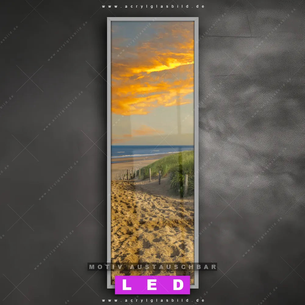 Bist du bereit, deine Wände mit einem dimmbaren LED Bild mit Fernbedienung und optionaler Farbtemperatursteuerung auf das nächste Level zu bringen? Unser Strand - Meer, Landschaften Canvalight® DIA LED Acrylglasbild ist genau das, was du brauchst! Das Wandbild mit LED Beleuchtung im Schmalen Format mit austauschbarer bedruckter Acrylglas-Scheibe Nordseeküste bringt Licht und Stil in dein Zuhause – und das in null Komma nichts!