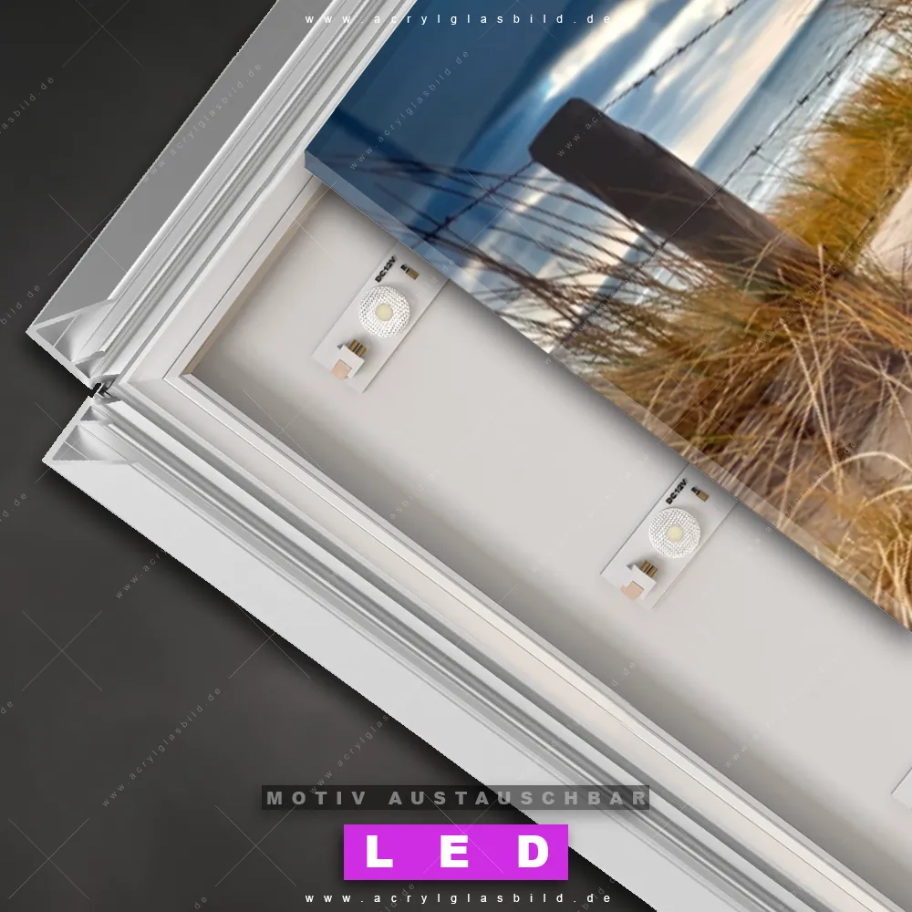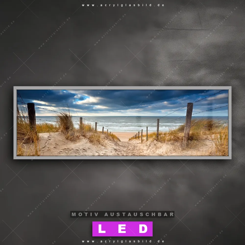 Deine Wände könnten dringend ein dimmbares LED Bild mit Fernbedienung und optionaler Farbtemperatursteuerung gebrauchen? Dann haben wir das perfekte Wandbild mit LED Beleuchtung für dich: unser mega-cooles Landschaften, Strand - Meer Canvalight® DIA LED Acrylglasbild! Mit unserem angesagten Leuchtbild aus Acrylglas im Panorama-Format und der austauschbaren bedruckten Acrylglas-Scheibe Nordseeküste & Wolken bringst du nicht nur Licht, sondern auch jede Menge Flair in deine Räume.