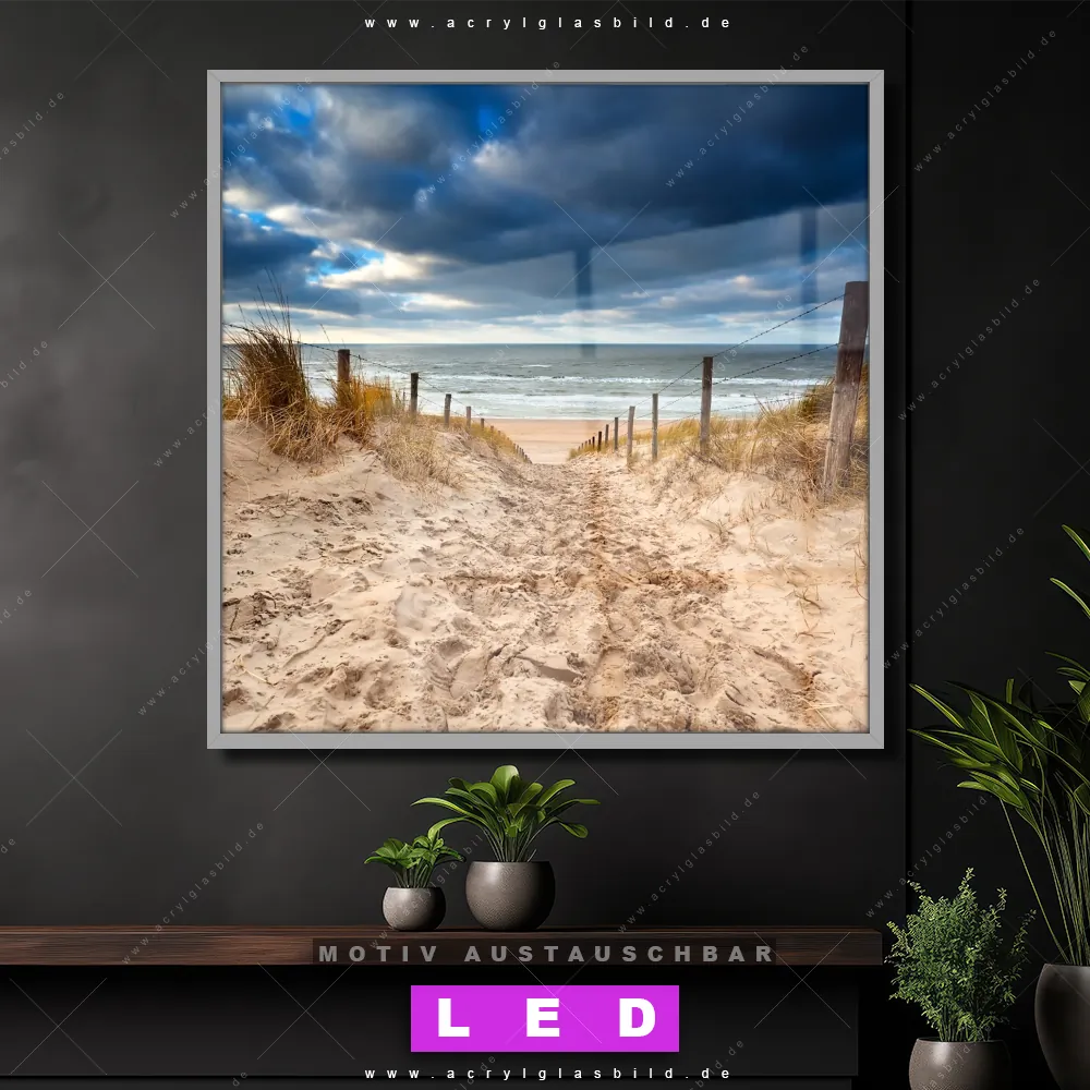 Bist du bereit, deine Wände mit einem dimmbaren LED Bild mit Fernbedienung und optionaler Farbtemperatursteuerung zum Leuchten zu bringen? Wir haben das ultimative Landschaften, Strand - Meer LED Acrylglasbild Canvalight® DIA für dich! Unser LED Wandbild aus Acrylglas Nordseeküste & Wolken im Quadratischen Format mit austauschbarer bedruckter Acrylglas-Scheibe im DIA-Klapprahmen bringt sofort jede Menge Glanz in deine vier Wände.