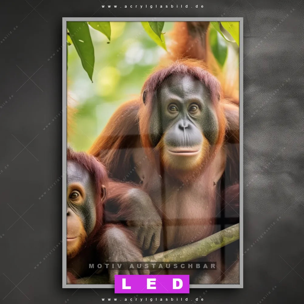 LED Acrylglasbild Canvalight® DIA | Orang Utan Familie im Regenwald | Hochformat