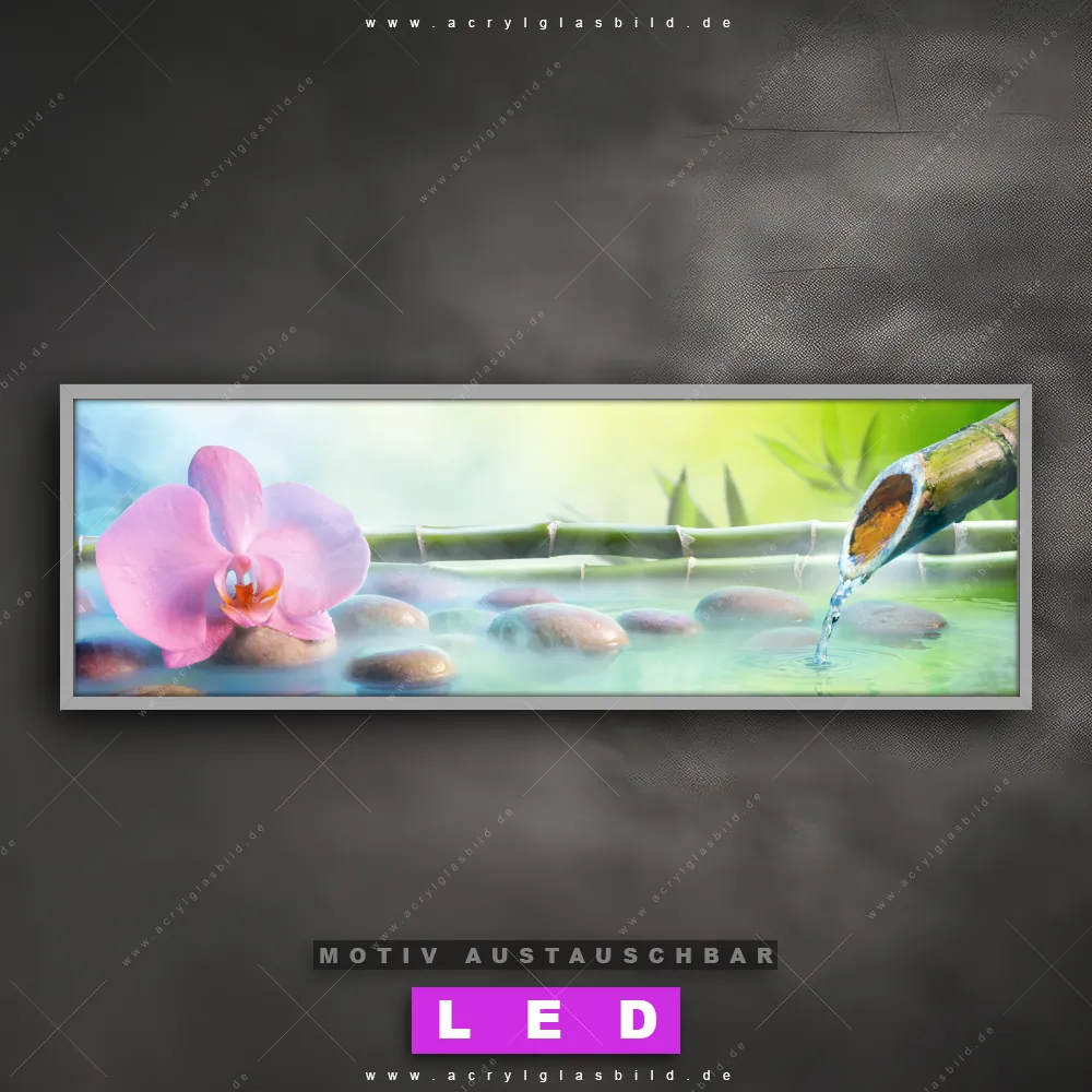 LED Acrylglasbild Canvalight® DIA | Orchidee im japanischer Brunnen | Panorama