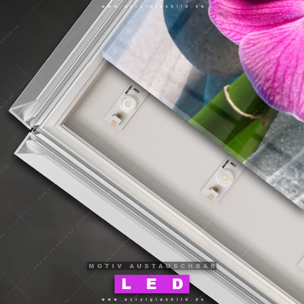 Also, worauf wartest du noch? Verwandle deine Wände mit einem LED Leuchtbild in wahre Kunstwerke und bestelle jetzt das Canvalight® DIA LED Acrylglasbild Entspannung im Zengarten mit Blüte. Deine Wände werden strahlen, und deine Freunde werden dank der wechselbaren Motive staunen!