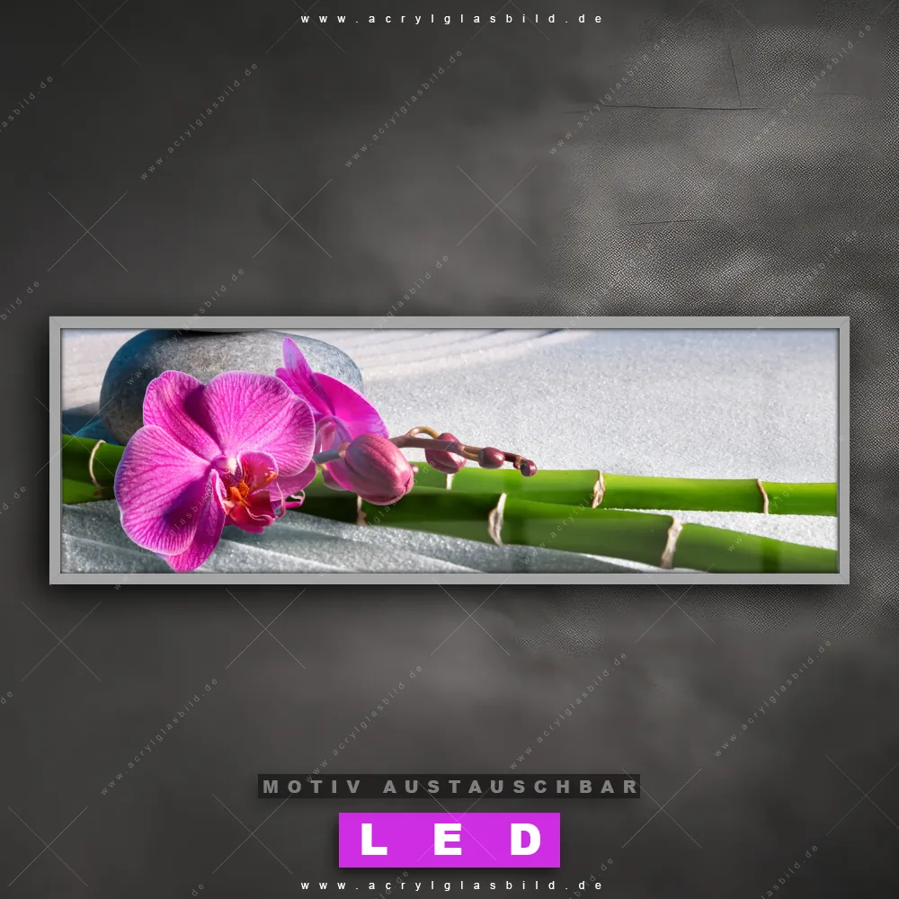 Wer will schon dunkle, triste Wände? Mit unserem LED Acrylglasbild Canvalight® DIA Pinke Orchideen-Blüte und seiner fantastischen LED-Ausleuchtung werden deine Wände in Arzt - Praxis, Wohnzimmer - Schlafzimmer zu echten Hinguckern. Wenn du auf der Suche nach einem beleuchteten Wandbild aus Acrylglas mit Buddhismus, Religion, Feng Shui, Zen, Meditation, Blume, Bambus, Zengarten, Steine, Orchidee bist, dann solltest du unser LED Leuchhtbild Zensteine im Sand mit pinker Blüte mit den beeindruckenden Motiv-Farben Türkis, Pink, Grün nicht verpassen. Gestaltet im angesagten Modern Art, Floral Stil, passt das LED Bild mit DIA-Klapprahmen und wechselbarer Acrylglas-Scheibe perfekt zu jedem Einrichtungsstil – selbst in deinem kleinen Dschungel aus Kreativität und Chaos!
