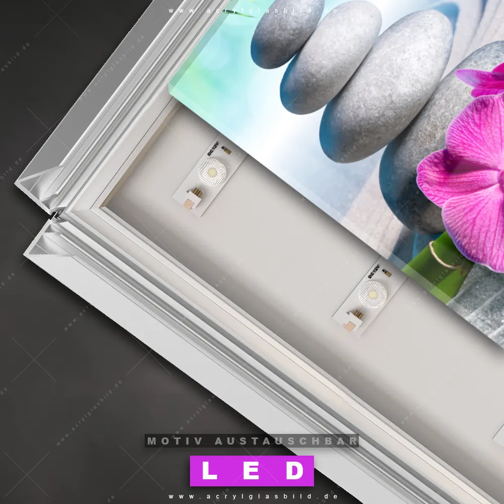 LED Bild mit DIA Klapprahmen-Profil und austauschbarem Acrylglas-Druck