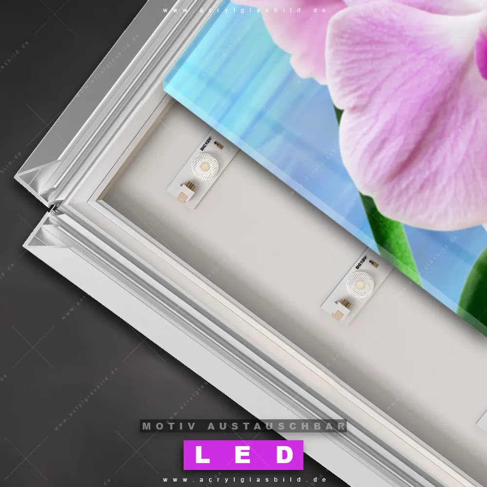 Deine Wände könnten dringend ein dimmbares LED Bild mit Fernbedienung und optionaler Farbtemperatursteuerung gebrauchen? Dann haben wir das perfekte Wandbild mit LED Beleuchtung für dich: unser mega-cooles Blumen - Botanik Canvalight® DIA LED Acrylglasbild! Mit unserem angesagten Leuchtbild aus Acrylglas im Panorama-Format und der austauschbaren bedruckten Acrylglas-Scheibe Orchideen Blüten bringst du nicht nur Licht, sondern auch jede Menge Flair in deine Räume.