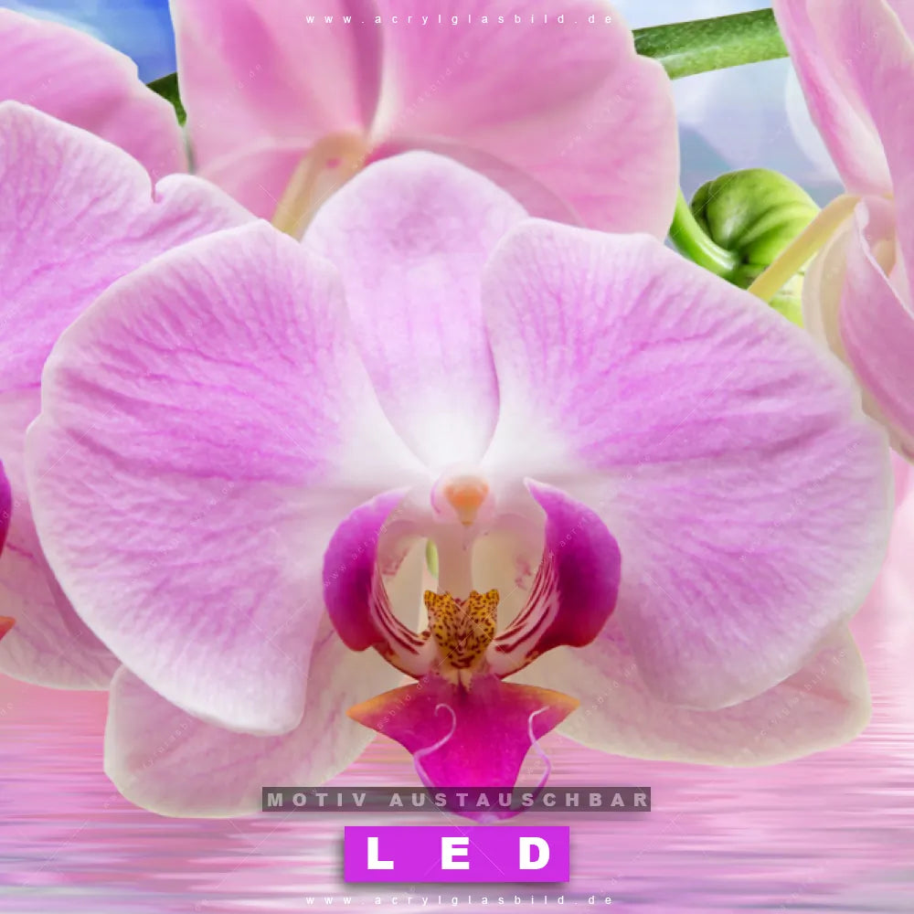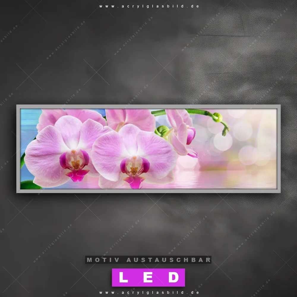 Wer will schon dunkle, triste Wände? Mit unserem LED Acrylglasbild Canvalight® DIA rosafarbene Orchideenblüten und seiner fantastischen LED-Ausleuchtung werden deine Wände in Arzt - Praxis, Wohnzimmer - Schlafzimmer, Badezimmer zu echten Hinguckern. Wenn du auf der Suche nach einem beleuchteten Wandbild aus Acrylglas mit Blume, Blüte, Pflanze, Tropfen, Orchidee, Wasser, Spiegelung, Wasserspiegelung bist, dann solltest du unser LED Leuchhtbild Orchidee mit Wasser im Hintergrund mit den beeindruckenden Motiv-Farben Hellblau, Rosa, Pink, Blau nicht verpassen. Gestaltet im angesagten Floral, Mixed Media Stil, passt das LED Bild mit DIA-Klapprahmen und wechselbarer Acrylglas-Scheibe perfekt zu jedem Einrichtungsstil – selbst in deinem kleinen Dschungel aus Kreativität und Chaos!