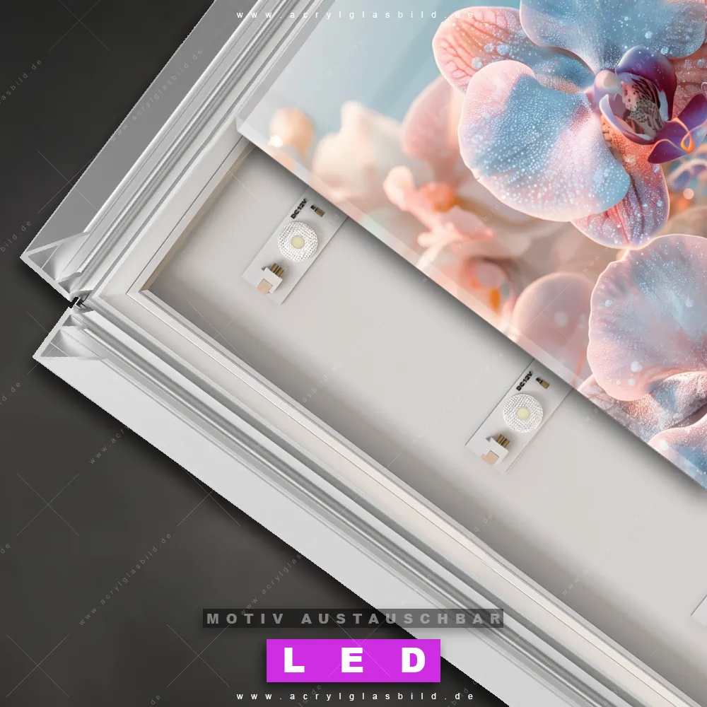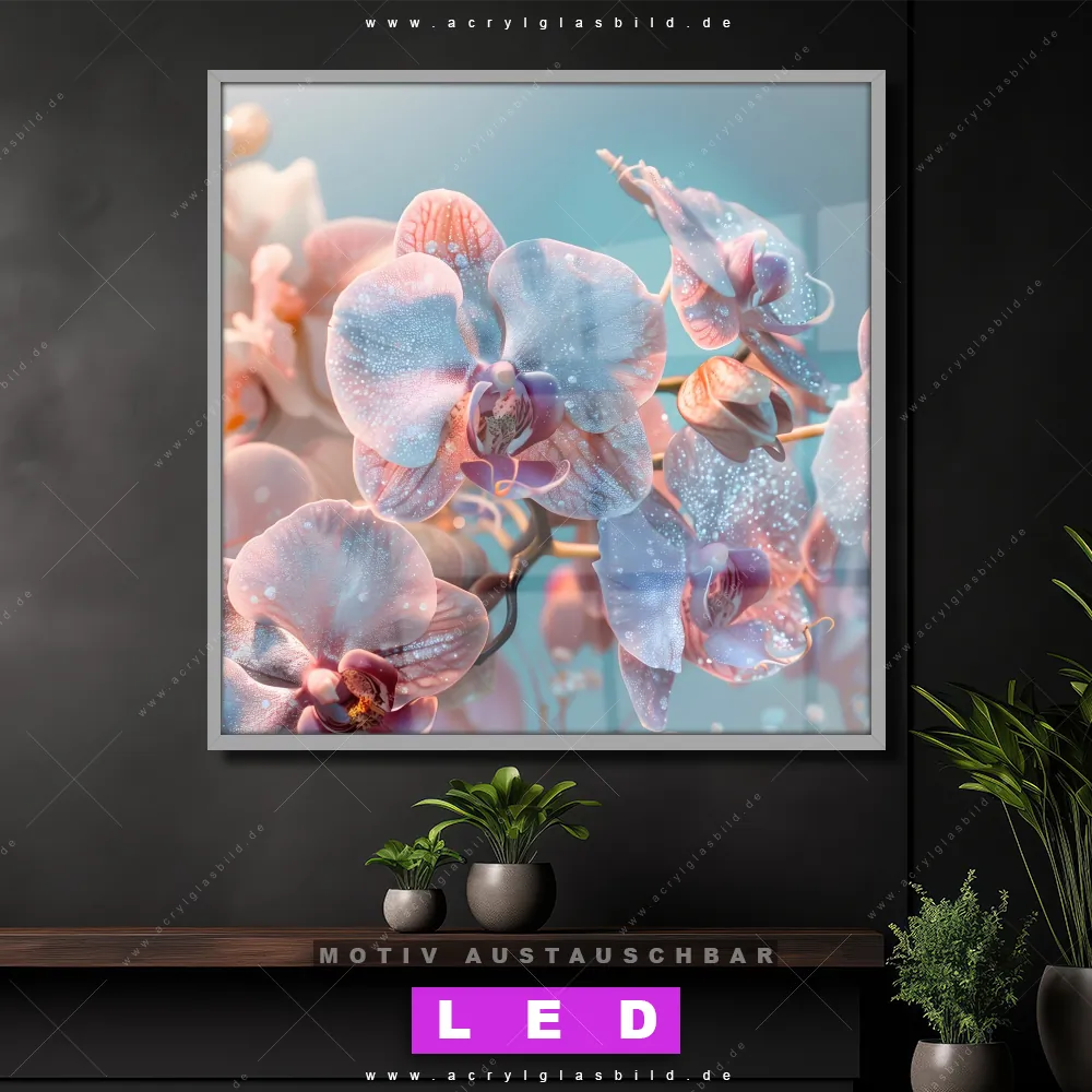 Bist du bereit, deine Wände mit einem dimmbaren LED Bild mit Fernbedienung und optionaler Farbtemperatursteuerung zum Leuchten zu bringen? Wir haben das ultimative Blumen - Botanik LED Acrylglasbild Canvalight® DIA für dich! Unser LED Wandbild aus Acrylglas Orchideenblüten in Pastell im Quadratischen Format mit austauschbarer bedruckter Acrylglas-Scheibe im DIA-Klapprahmen bringt sofort jede Menge Glanz in deine vier Wände.