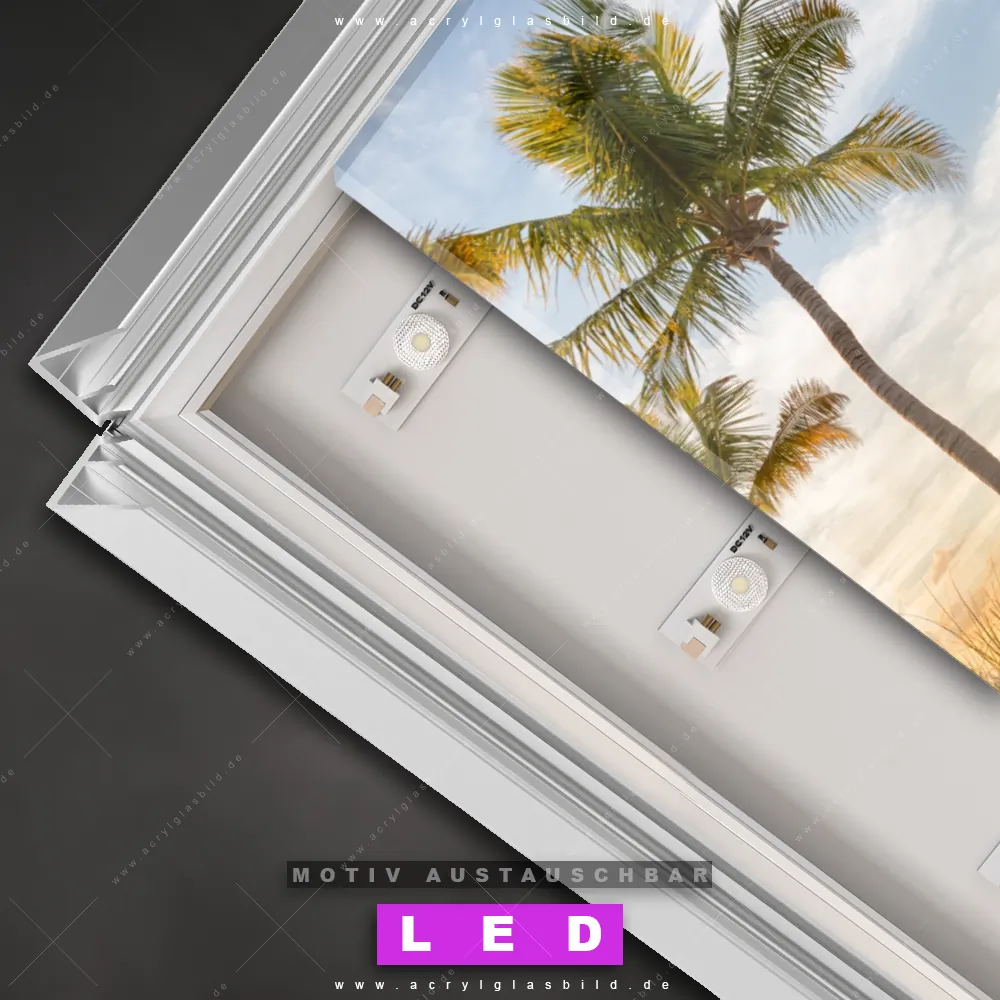 Na, worauf wartest du noch? Mach deine Wände zum Star der Show und bestelle jetzt das Canvalight® DIA LED Acrylglasbild Strand mit Palmen. Deine Wände werden es dir danken und deine Freunde werden dank der wechselbaren Motive vor Neid platzen!