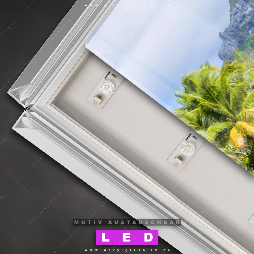 Na, worauf wartest du noch? Mach deine Wände zum Star der Show und bestelle jetzt das Canvalight® DIA LED Acrylglasbild Blaue Lagune. Deine Wände werden es dir danken und deine Freunde werden dank der wechselbaren Motive vor Neid platzen!