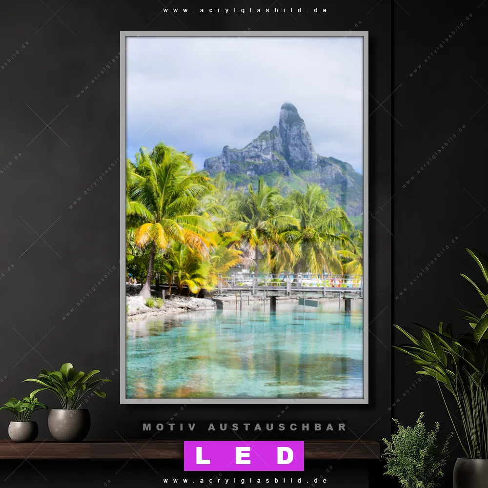 LED Acrylglasbild Canvalight® DIA | Palmen & Berg auf Insel | Hochformat