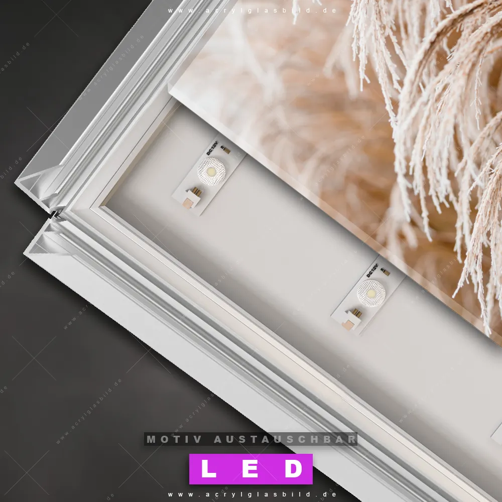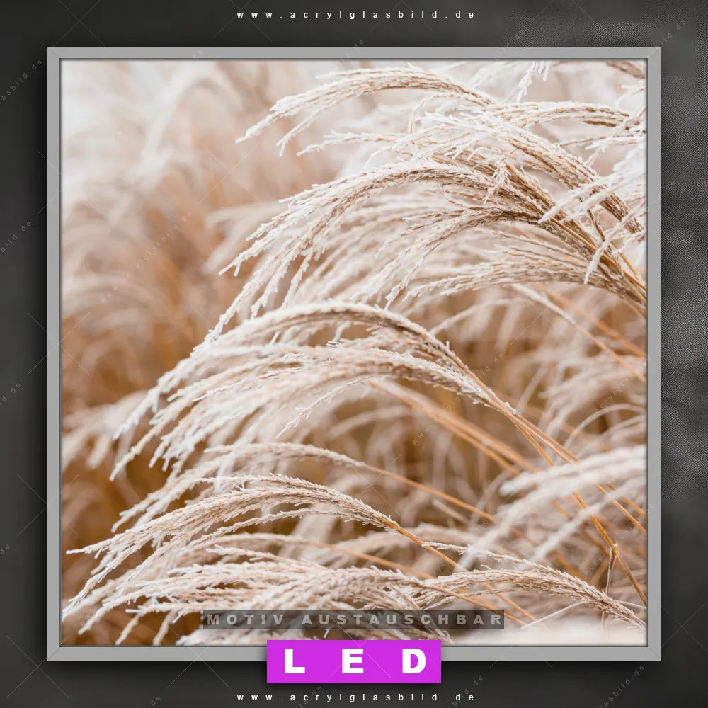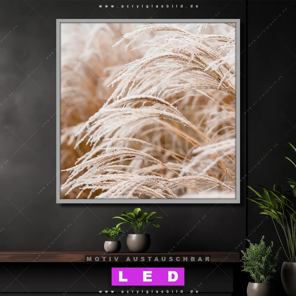 Bist du bereit, deine Wände mit einem dimmbaren LED Bild mit Fernbedienung und optionaler Farbtemperatursteuerung zum Leuchten zu bringen? Wir haben das ultimative Blumen - Botanik LED Acrylglasbild Canvalight® DIA für dich! Unser LED Wandbild aus Acrylglas Pampasgras im Quadratischen Format mit austauschbarer bedruckter Acrylglas-Scheibe im DIA-Klapprahmen bringt sofort jede Menge Glanz in deine vier Wände.