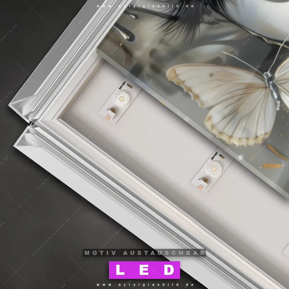 LED Acrylglasbild Canvalight® DIA | Paola - Porträt mit Schmetterlingen | Panorama