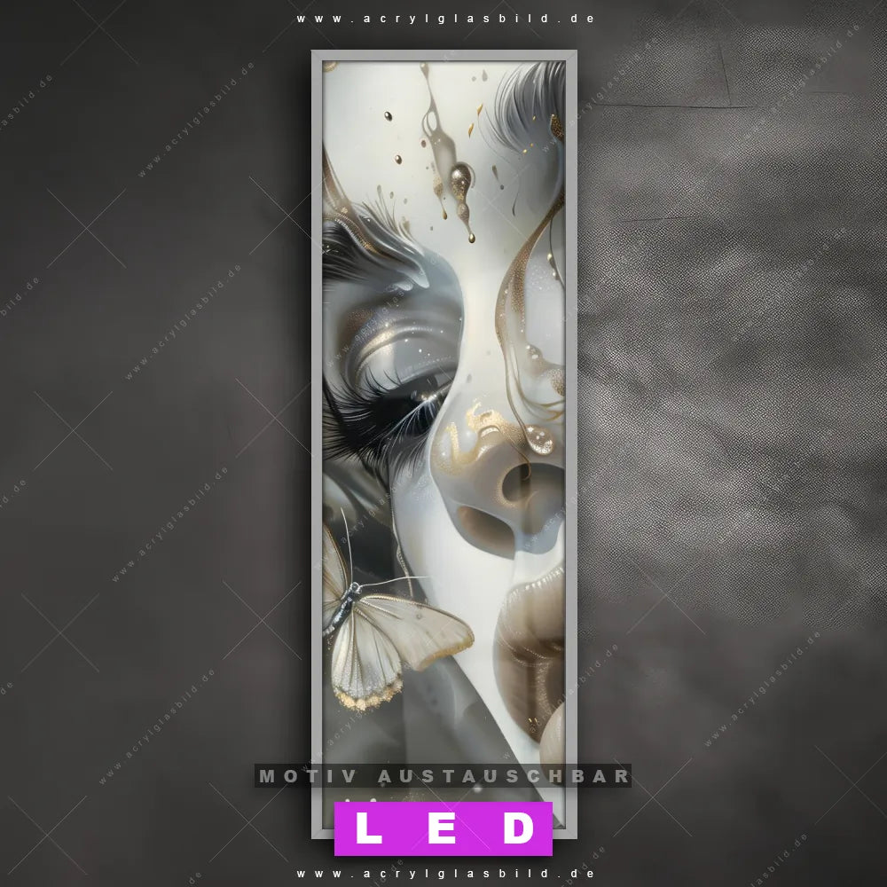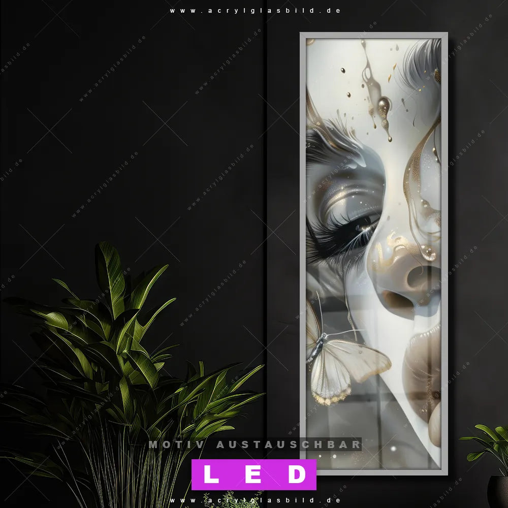 LED Acrylglasbild Canvalight® DIA | Paola - Porträt mit Schmetterlingen | Schmal