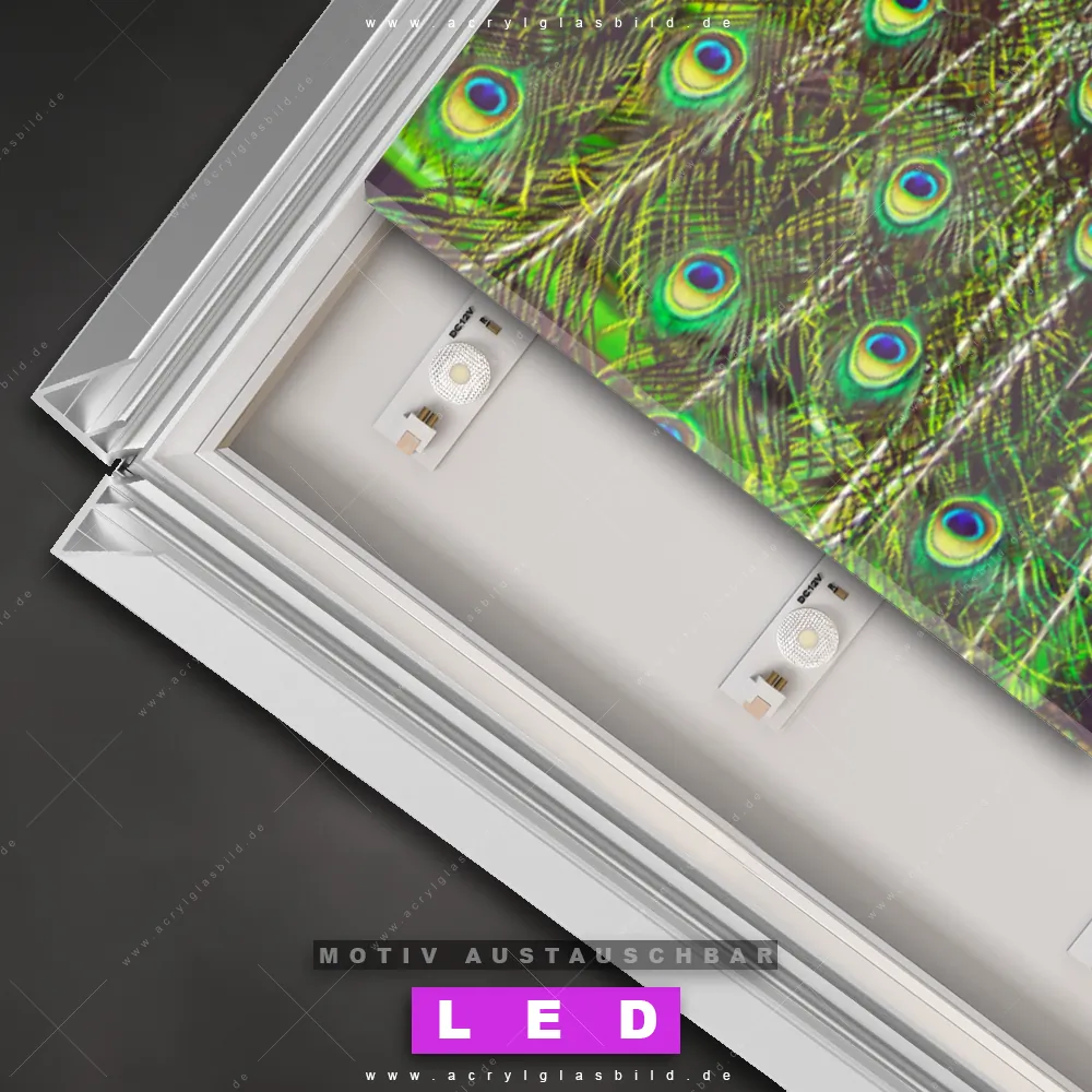 Also, worauf wartest du noch? Verwandle deine Wände mit einem LED Leuchtbild in wahre Kunstwerke und bestelle jetzt das Canvalight® DIA LED Acrylglasbild Pfauenrad. Deine Wände werden strahlen, und deine Freunde werden dank der wechselbaren Motive staunen!