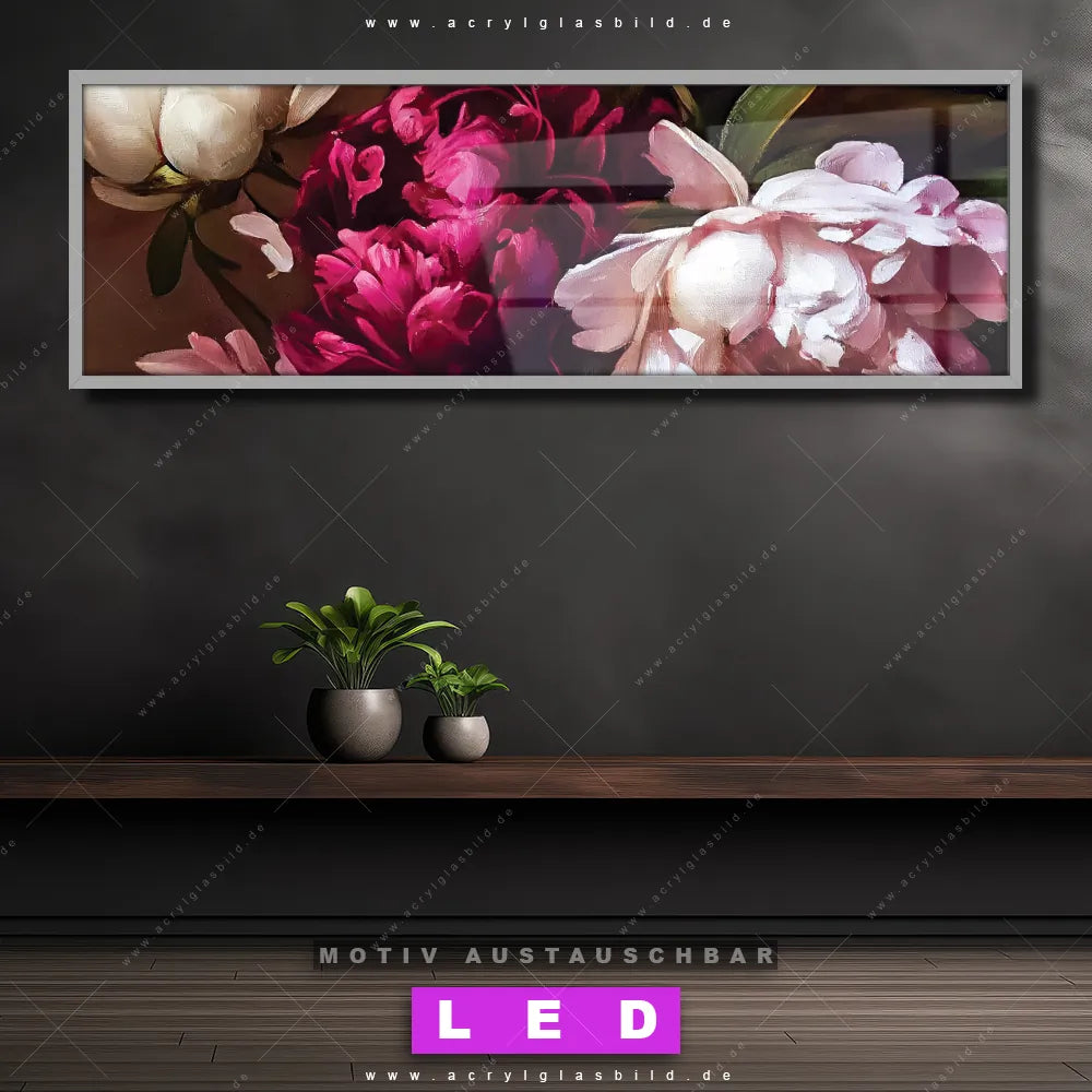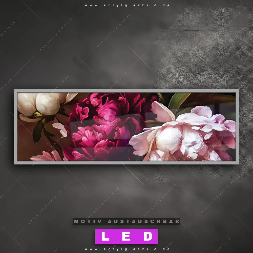 LED Acrylglasbild Canvalight® DIA | Pfingstrosen im Barockstil | Panorama