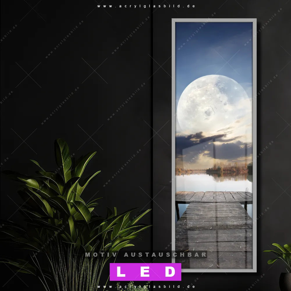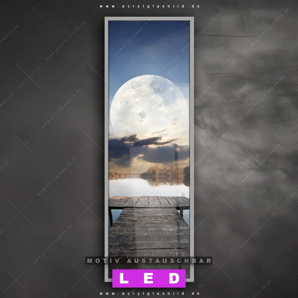 Bist du bereit, deine Wände mit einem dimmbaren LED Bild mit Fernbedienung und optionaler Farbtemperatursteuerung auf das nächste Level zu bringen? Unser Landschaften Canvalight® DIA LED Acrylglasbild ist genau das, was du brauchst! Das Wandbild mit LED Beleuchtung im Schmalen Format mit austauschbarer bedruckter Acrylglas-Scheibe Pier am Fluss bringt Licht und Stil in dein Zuhause – und das in null Komma nichts!