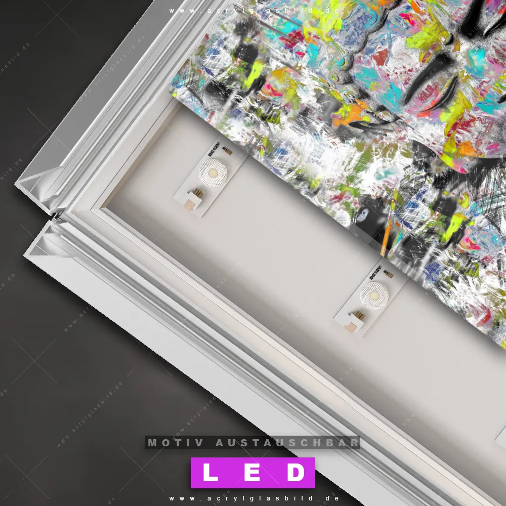 Also, worauf wartest du noch? Gib mit einem beleuchteten Wandbild mit wechselbarer Acrylglas-Scheibe deinen Wänden das gewisse Etwas und bestelle jetzt das LED Acrylglasbild Canvalight® DIA Abstraktes Buddhagemälde – dein Zuhause wird es dir danken und deine Freunde werden dank der wechselbaren Motive erblassen!