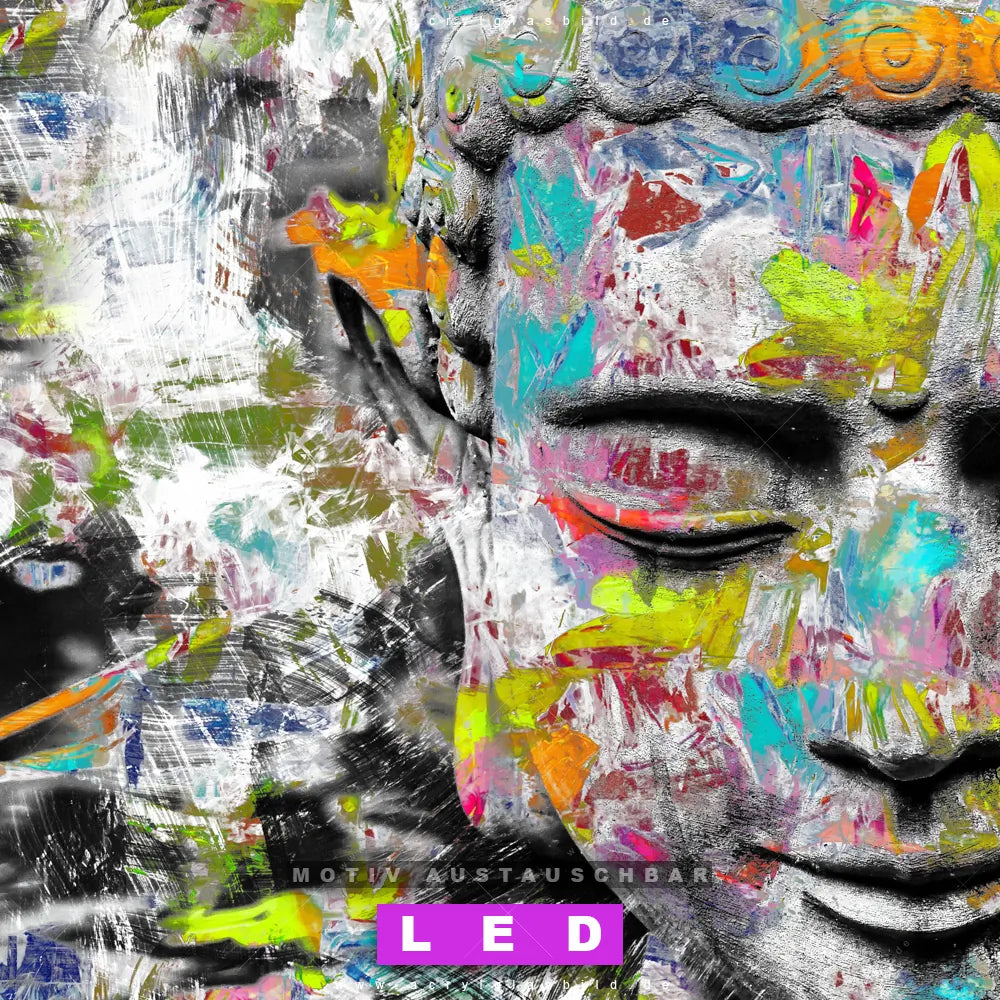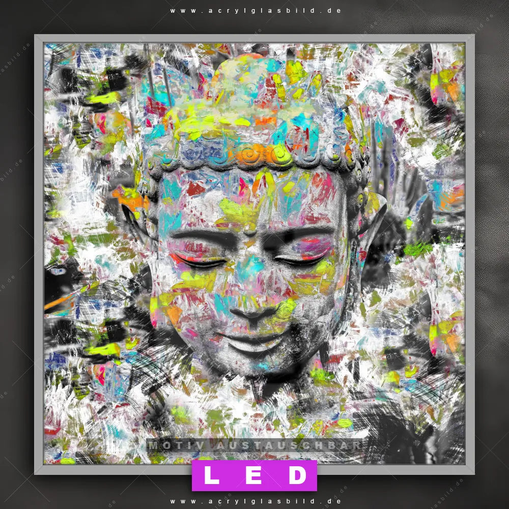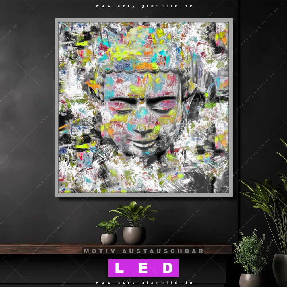 Bist du bereit, deine Wände mit einem dimmbaren LED Bild mit Fernbedienung und optionaler Farbtemperatursteuerung zum Leuchten zu bringen? Wir haben das ultimative Buddha - Feng Shui LED Acrylglasbild Canvalight® DIA für dich! Unser LED Wandbild aus Acrylglas Pop Art Buddha Kopf im Quadratischen Format mit austauschbarer bedruckter Acrylglas-Scheibe im DIA-Klapprahmen bringt sofort jede Menge Glanz in deine vier Wände.