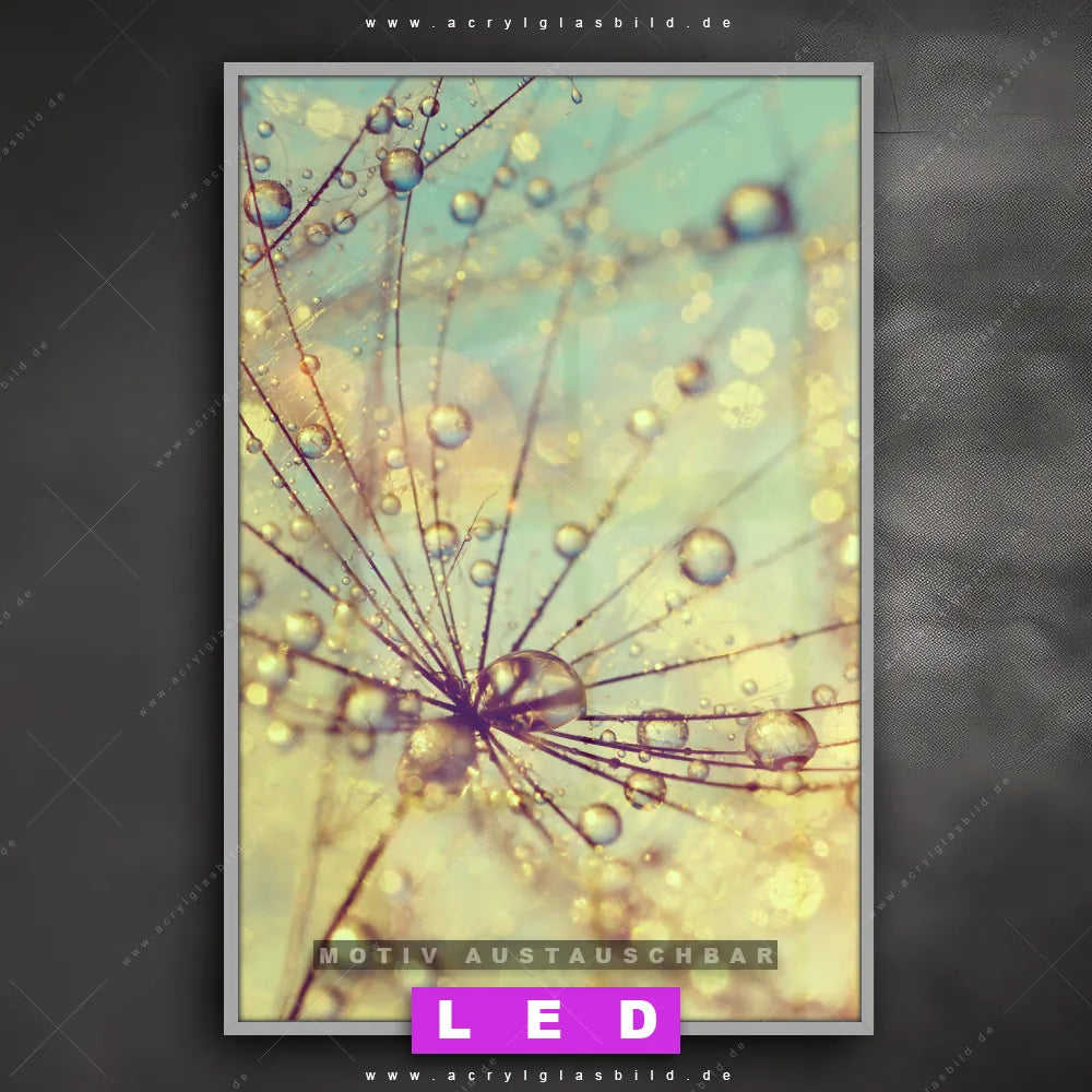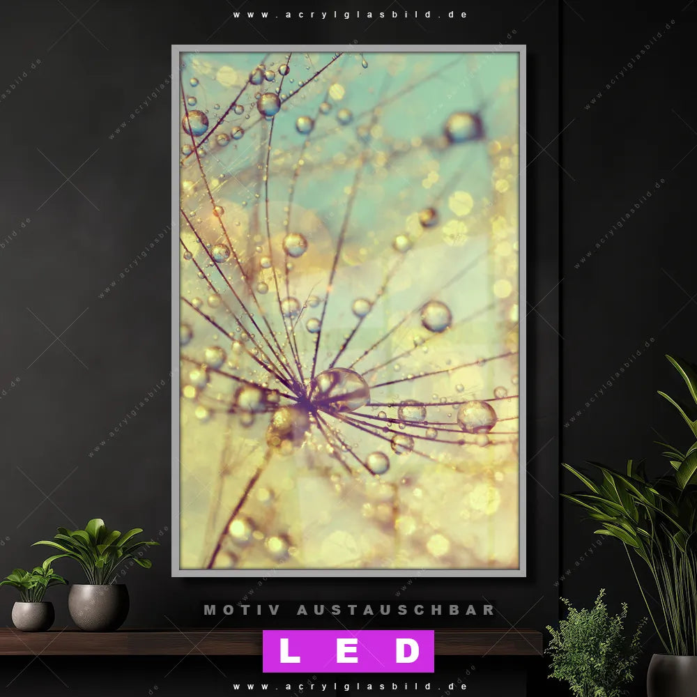Wer braucht schon langweilige Wände, wenn man sie mit unserem LED Acrylglasbild Canvalight® DIA Pusteblume mit Wassertropfen aufpeppen kann? Dank der genialen LED-Ausleuchtung wirst du in Arzt - Praxis, Büro - Kanzlei, Bar - Gastronomie, Flur - Eingangsbereich, Wohnzimmer - Schlafzimmer nie wieder über deine eigenen Füße stolpern. Wenn du nach einem beleuchteten Wandbild aus Acrylglas mit Blume, Botanik, Pflanze, Natur, Nahaufnahme, Pusteblume, Dandelion, Sonnenuntergang, Tautropfen suchst, dann ist unser LED Acrylglasbild Gräser mit Wassertropfen in den hammermäßigen Motiv-Farben Beige, Mint, Orange genau das richtige LED Bild für dich. Im coolen Floral, Abstrakt Stil gestaltet, passt das LED Leuchtbild mit DIA-Klapprahmen und glänzender Front aus Acrylglas perfekt zu jedem Einrichtungsstil – sogar zu deinem chaotischen Kreativlabor!