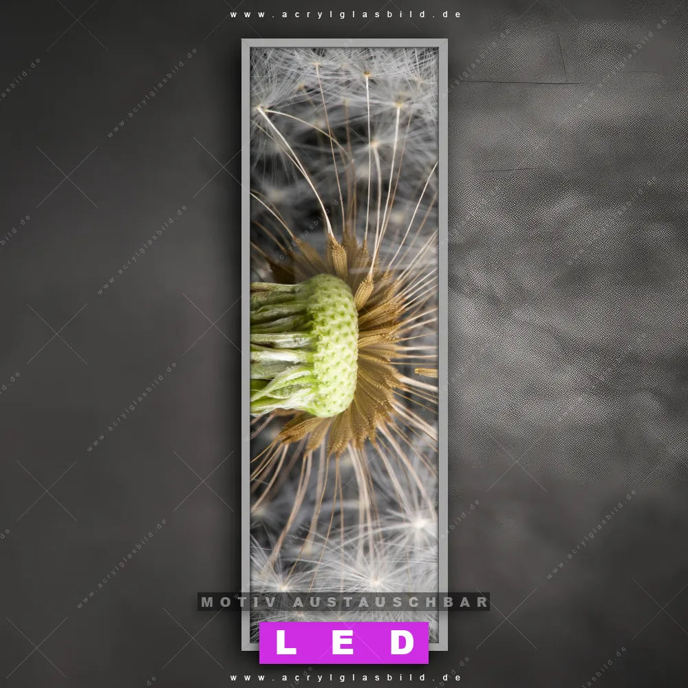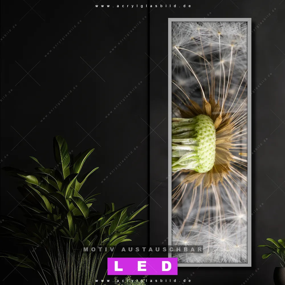 Bist du bereit, deine Wände mit einem dimmbaren LED Bild mit Fernbedienung und optionaler Farbtemperatursteuerung auf das nächste Level zu bringen? Unser Blumen - Botanik Canvalight® DIA LED Acrylglasbild ist genau das, was du brauchst! Das Wandbild mit LED Beleuchtung im Schmalen Format mit austauschbarer bedruckter Acrylglas-Scheibe Pusteblume No. 10 bringt Licht und Stil in dein Zuhause – und das in null Komma nichts!