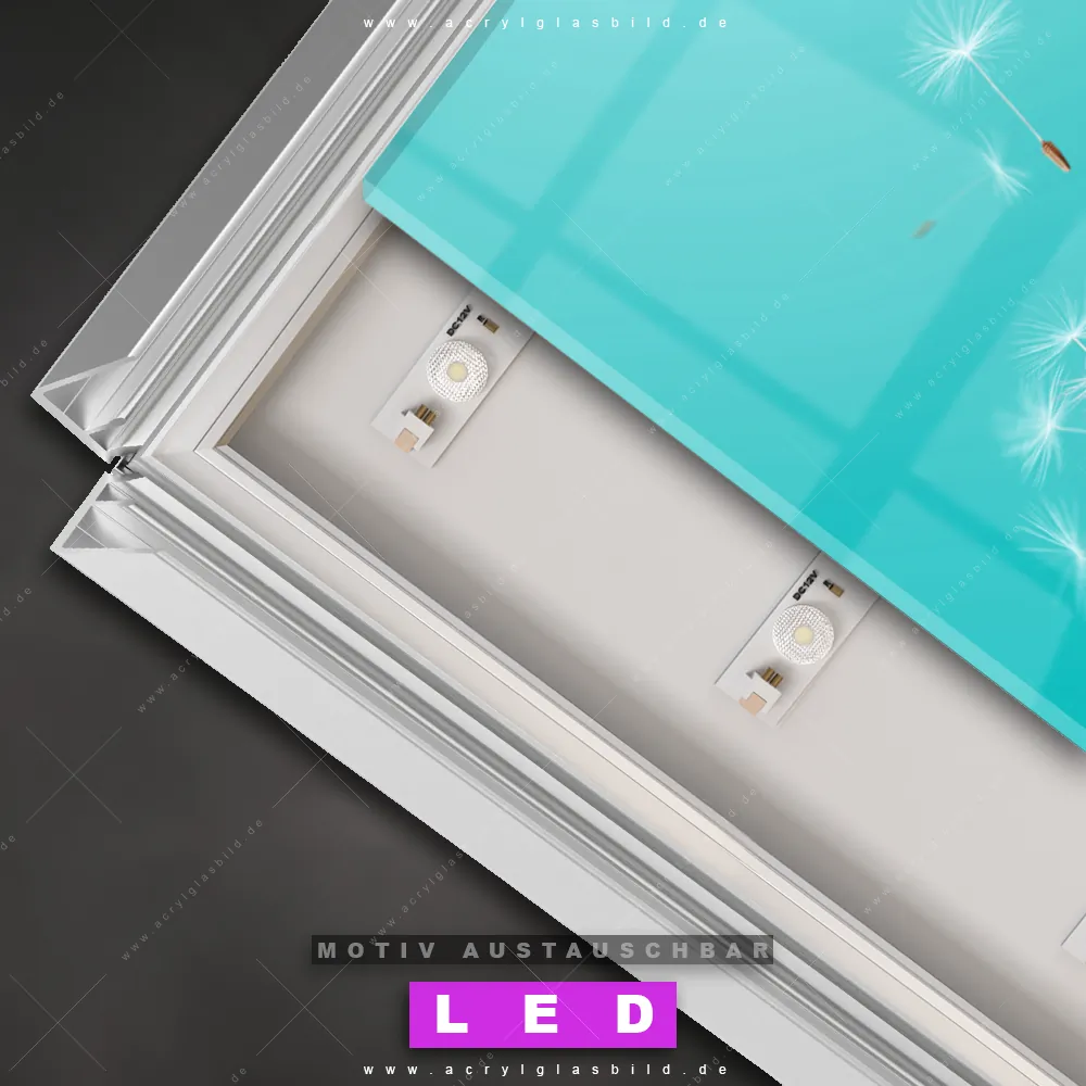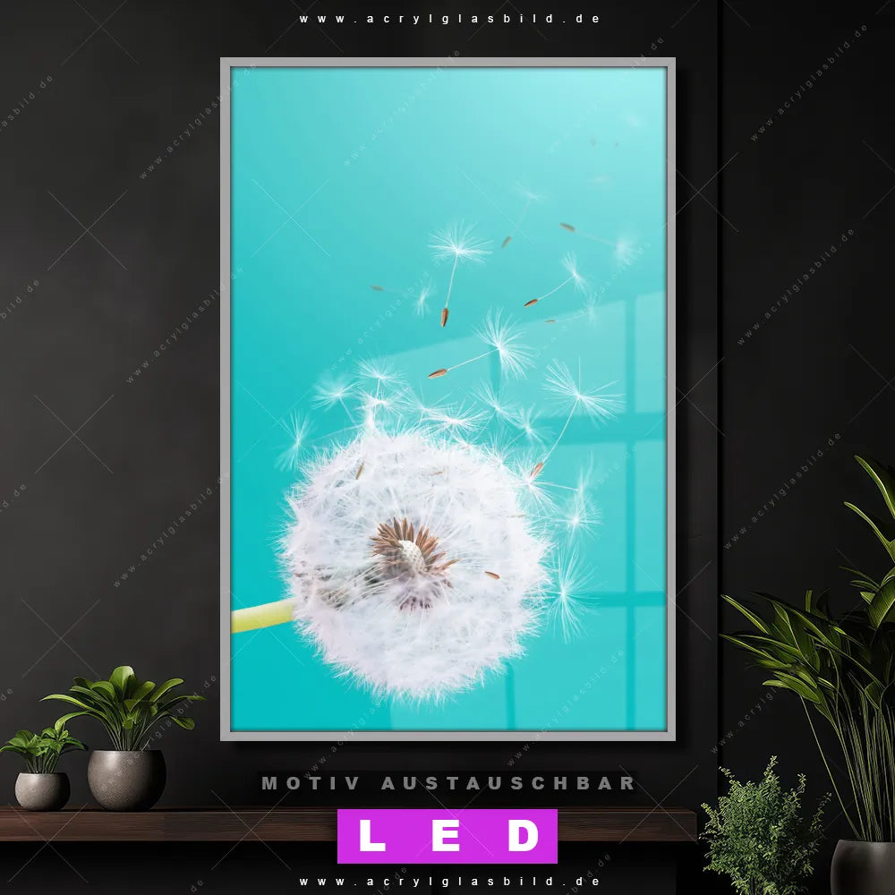 Du suchst nach einem Wandbild mit LED Beleuchtung als ultimativen Hingucker für deine Wände? Dann haben wir das perfekte dimmbare LED Bild mit Fernbedienung und optionaler Farbtemperatursteuerung für dich: unser abgefahrenes Blumen - Botanik Canvalight® DIA LED Acrylglasbild! Mit dem LED Leuchtbild aus Acrylglas Pusteblume No. 4 im Hochformat mit austauschbarer bedruckter Acrylglas-Scheibe bringst du nicht nur Licht, sondern auch ordentlich Stil in deine Bude.
