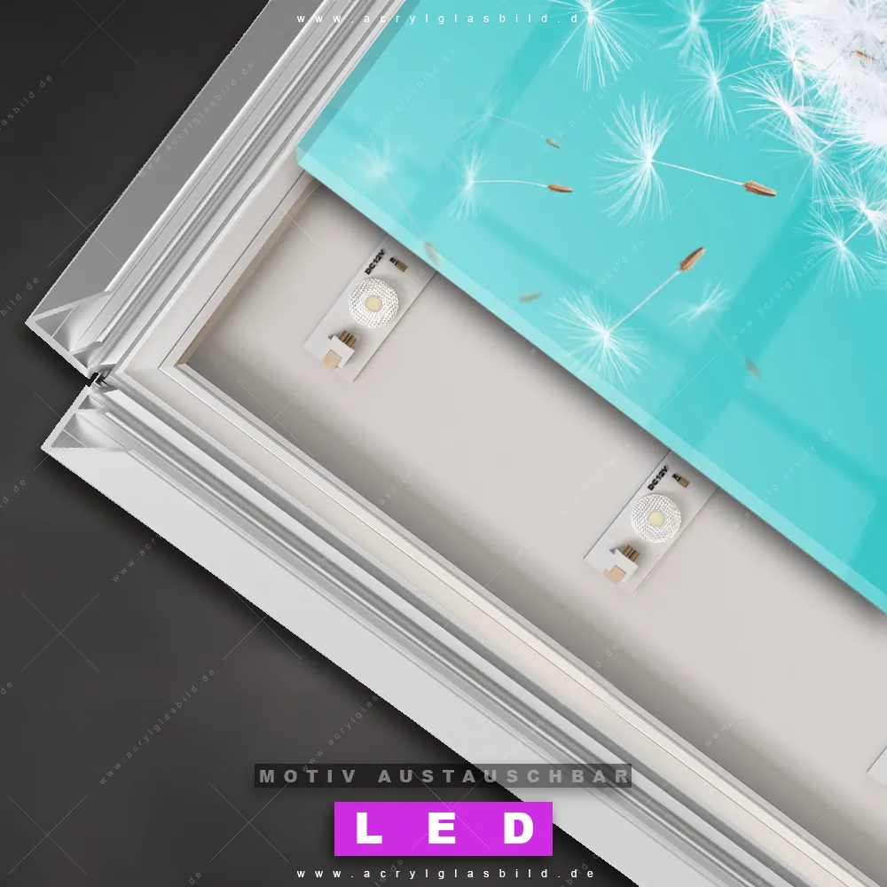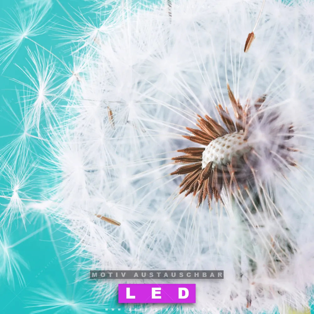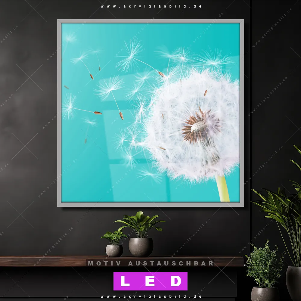 Bist du bereit, deine Wände mit einem dimmbaren LED Bild mit Fernbedienung und optionaler Farbtemperatursteuerung zum Leuchten zu bringen? Wir haben das ultimative Blumen - Botanik LED Acrylglasbild Canvalight® DIA für dich! Unser LED Wandbild aus Acrylglas Pusteblume No. 4 im Quadratischen Format mit austauschbarer bedruckter Acrylglas-Scheibe im DIA-Klapprahmen bringt sofort jede Menge Glanz in deine vier Wände.