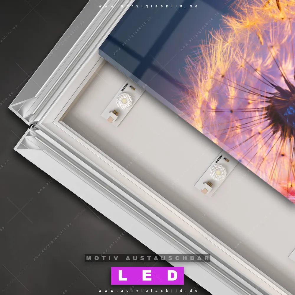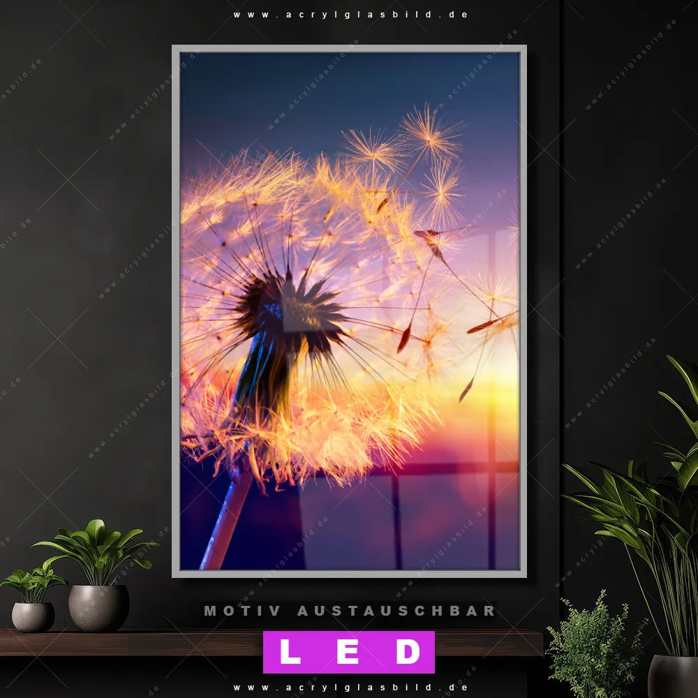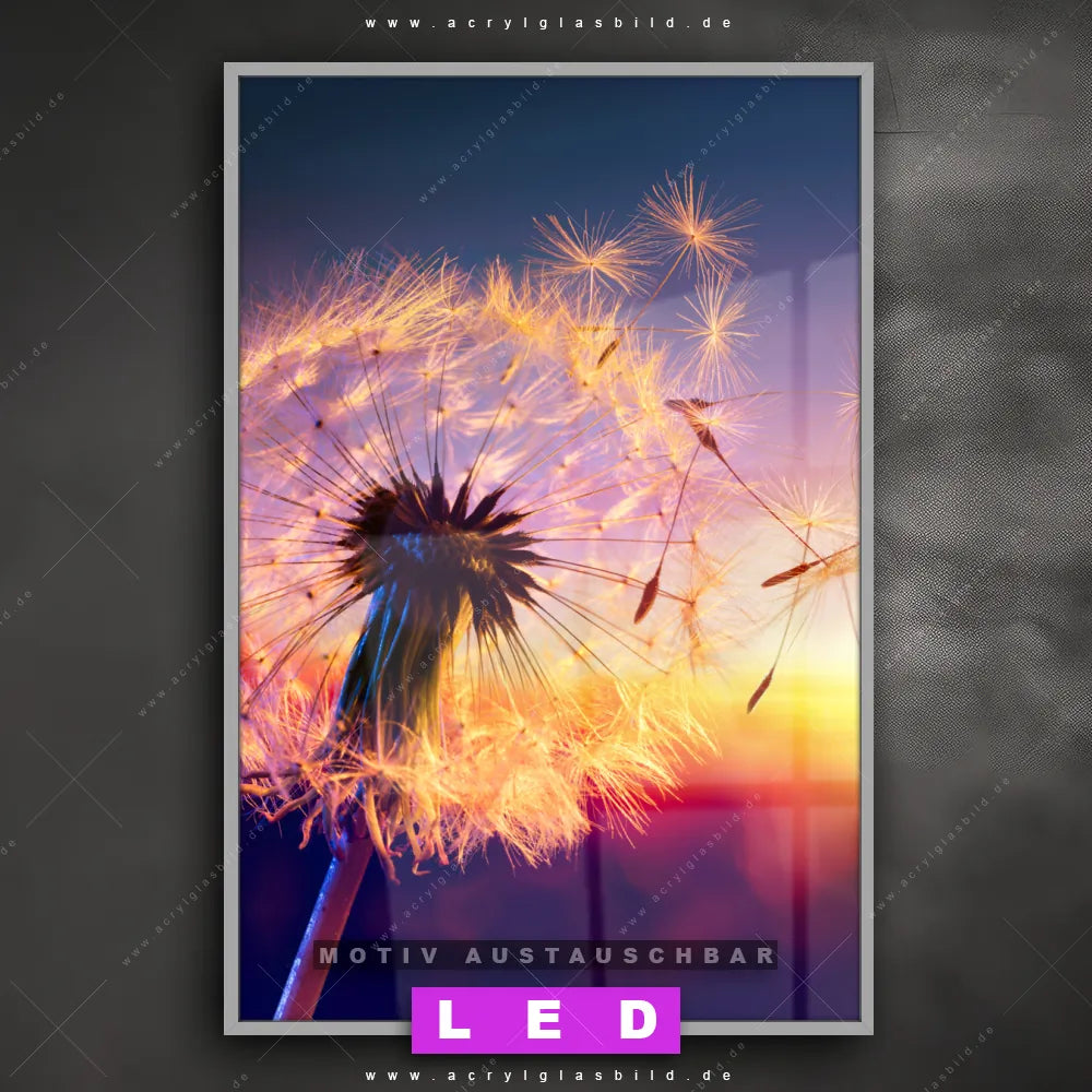 Na, worauf wartest du noch? Mach deine Wände zum Star der Show und bestelle jetzt das Canvalight® DIA LED Acrylglasbild Samen Löwenzahn fliegt vor Sonnenuntergang. Deine Wände werden es dir danken und deine Freunde werden dank der wechselbaren Motive vor Neid platzen!