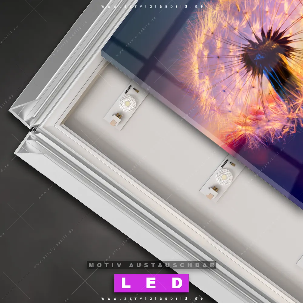 Also, worauf wartest du noch? Gib deinen Wänden den gewissen Wow-Effekt und bestelle jetzt das Canvalight® DIA LED Acrylglasbild Samen Löwenzahn fliegt vor Sonnenuntergang, um ein echtes Highlight an deine Wand zu zaubern!