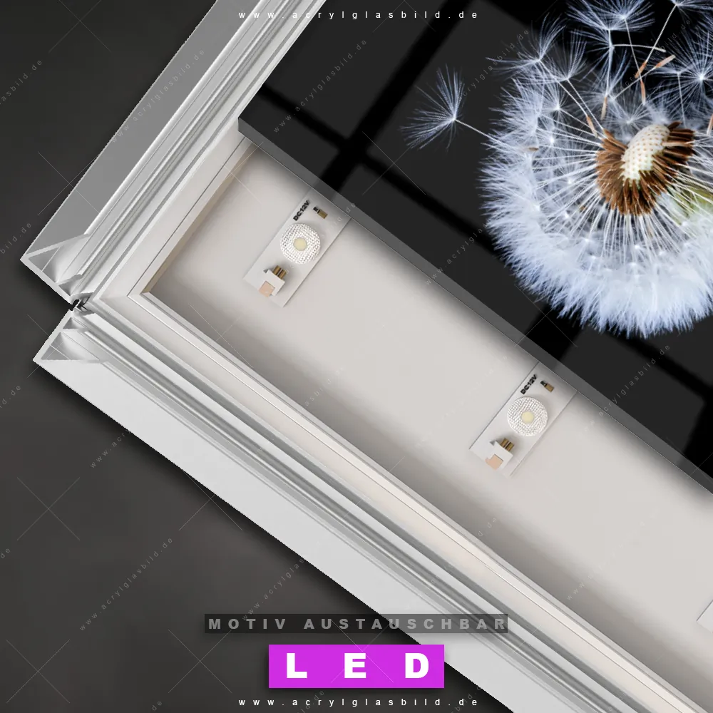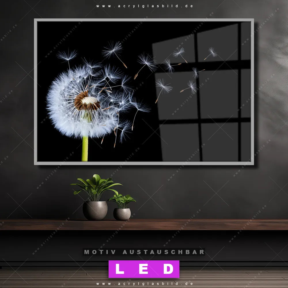 Du bist auf der Suche nach einem dimmbaren Blumen - Botanik LED Bild mit Fernbedienung und optionaler Farbtemperatursteuerung? Dann haben wir hier genau das richtige Wandbild mit LED Beleuchtung für dich: Unser Canvalight® DIA LED Acrylglasbild Pusteblume No. 6 im Querformat mit austauschbarer bedruckter Acrylglas-Scheibe. Dieses Leuchtbild bringt sofort Partybeleuchtung in deine Räume!