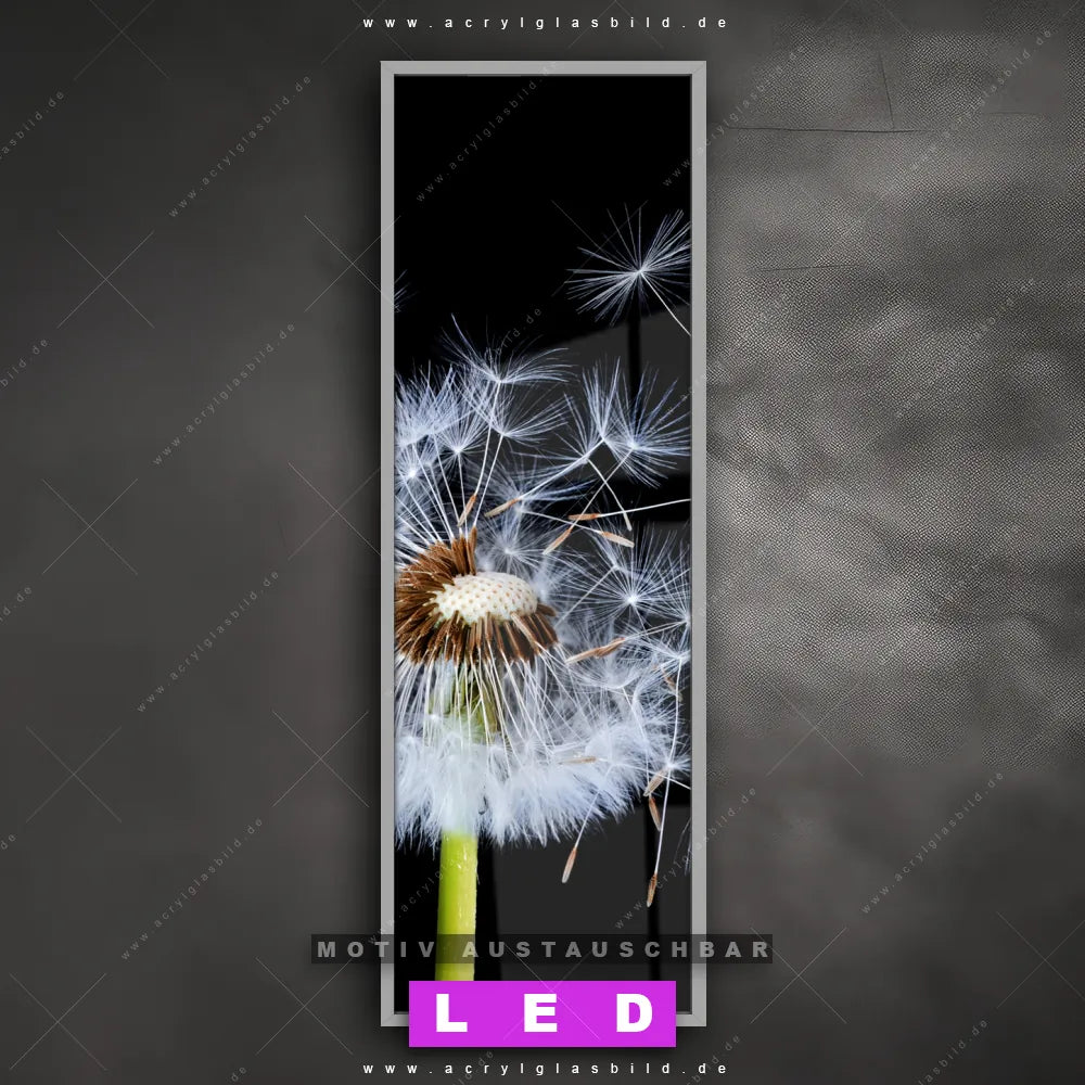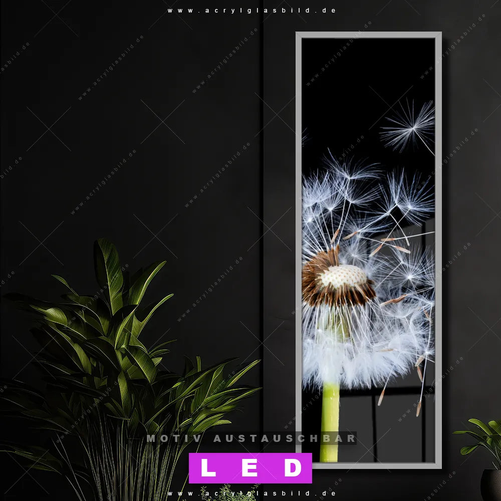 Bist du bereit, deine Wände mit einem dimmbaren LED Bild mit Fernbedienung und optionaler Farbtemperatursteuerung auf das nächste Level zu bringen? Unser Blumen - Botanik Canvalight® DIA LED Acrylglasbild ist genau das, was du brauchst! Das Wandbild mit LED Beleuchtung im Schmalen Format mit austauschbarer bedruckter Acrylglas-Scheibe Pusteblume No. 6 bringt Licht und Stil in dein Zuhause – und das in null Komma nichts!