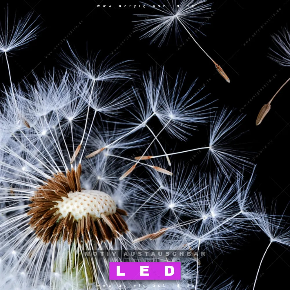 Also, warum noch zögern? Mach deine Wände mit einem Leuchtbild zum absoluten Hingucker und bestelle jetzt das Canvalight® DIA LED Acrylglasbild Blüte mit Flugsamen vor schwarzem Hintergrund. Deine Wände werden leuchten, und deine Freunde werden dank der wechselbaren Motive beeindruckt sein!