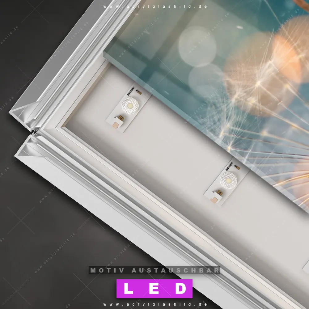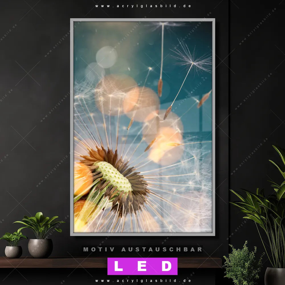 Du suchst nach einem Wandbild mit LED Beleuchtung als ultimativen Hingucker für deine Wände? Dann haben wir das perfekte dimmbare LED Bild mit Fernbedienung und optionaler Farbtemperatursteuerung für dich: unser abgefahrenes Blumen - Botanik Canvalight® DIA LED Acrylglasbild! Mit dem LED Leuchtbild aus Acrylglas Pusteblume No. 7 im Hochformat mit austauschbarer bedruckter Acrylglas-Scheibe bringst du nicht nur Licht, sondern auch ordentlich Stil in deine Bude.