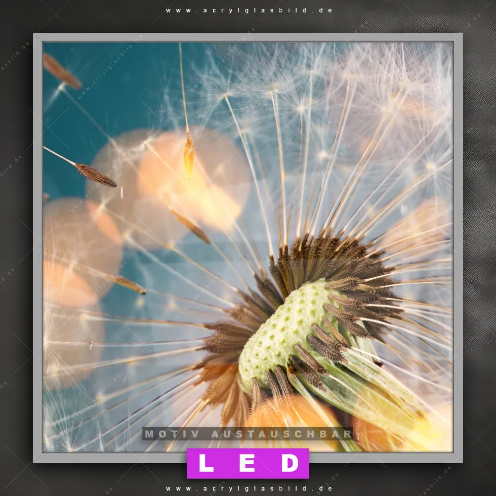 Bist du bereit, deine Wände mit einem dimmbaren LED Bild mit Fernbedienung und optionaler Farbtemperatursteuerung zum Leuchten zu bringen? Wir haben das ultimative Blumen - Botanik LED Acrylglasbild Canvalight® DIA für dich! Unser LED Wandbild aus Acrylglas Pusteblume No. 7 im Quadratischen Format mit austauschbarer bedruckter Acrylglas-Scheibe im DIA-Klapprahmen bringt sofort jede Menge Glanz in deine vier Wände.