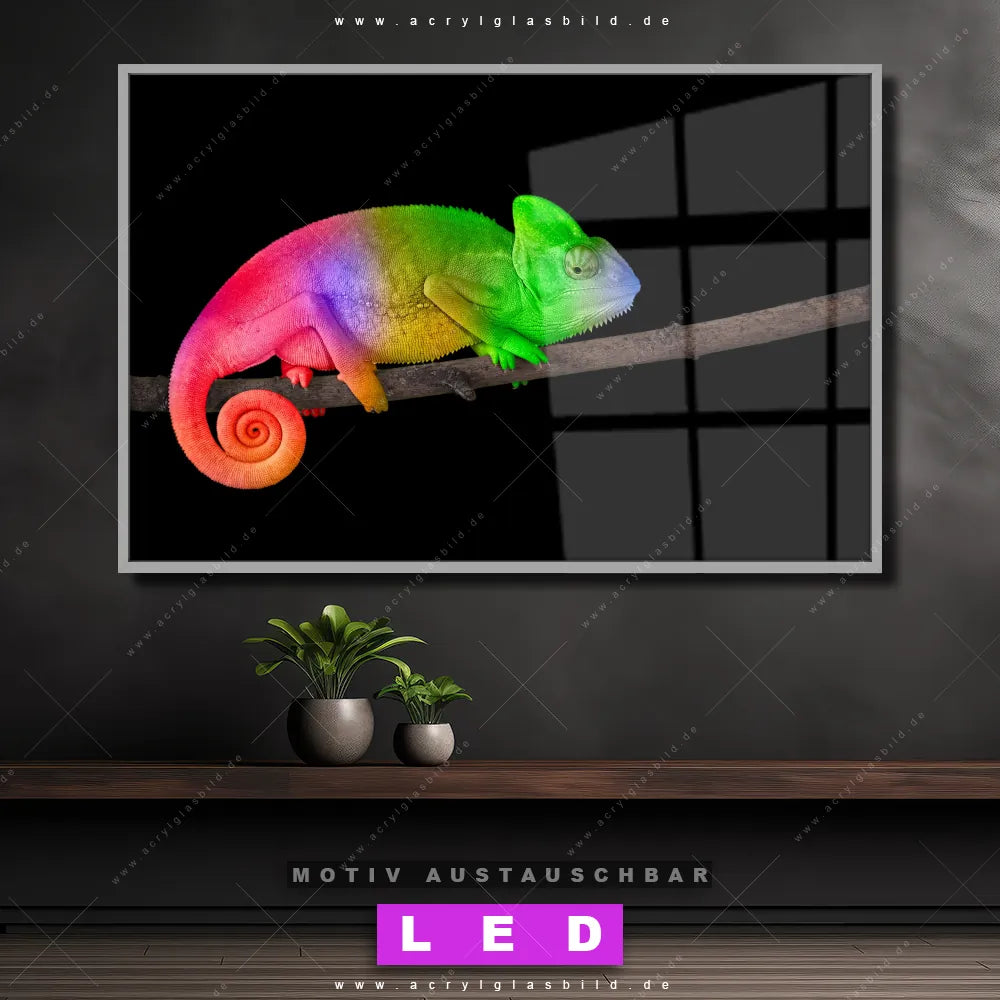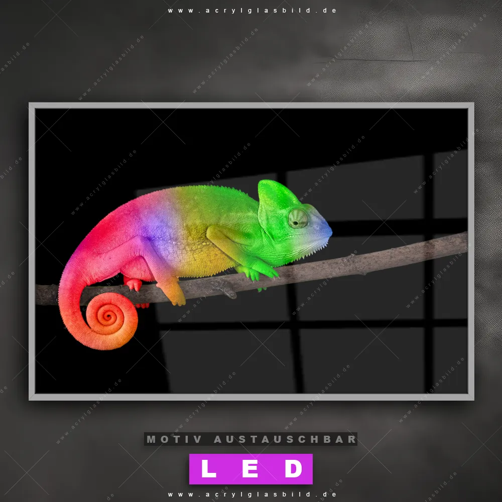 LED Acrylglasbild Canvalight® DIA | Regenbogen Chamäleon | Querformat