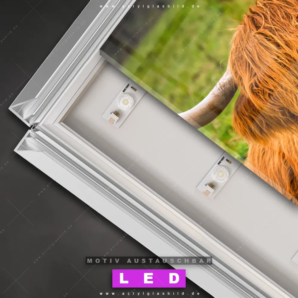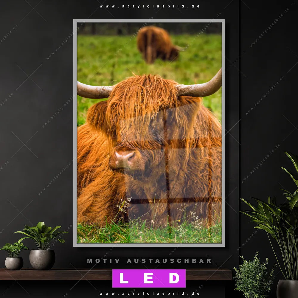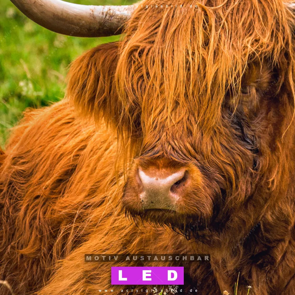 Du suchst nach einem Wandbild mit LED Beleuchtung als ultimativen Hingucker für deine Wände? Dann haben wir das perfekte dimmbare LED Bild mit Fernbedienung und optionaler Farbtemperatursteuerung für dich: unser abgefahrenes Tierwelt Canvalight® DIA LED Acrylglasbild! Mit dem LED Leuchtbild aus Acrylglas Rind in den schottischen Highlands im Hochformat mit austauschbarer bedruckter Acrylglas-Scheibe bringst du nicht nur Licht, sondern auch ordentlich Stil in deine Bude.