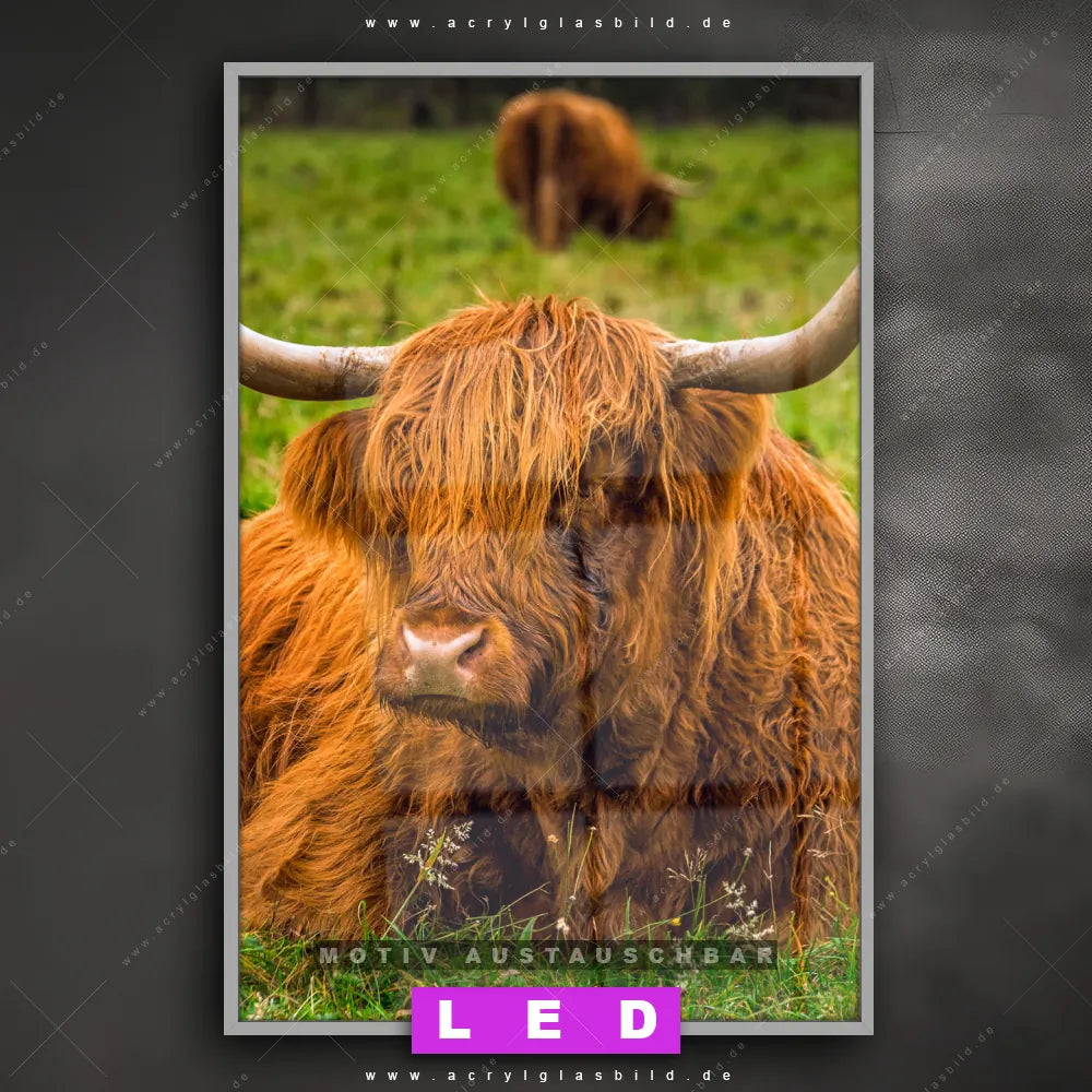 LED Acrylglasbild Canvalight® DIA | Rind in den schottischen Highlands | Hochformat